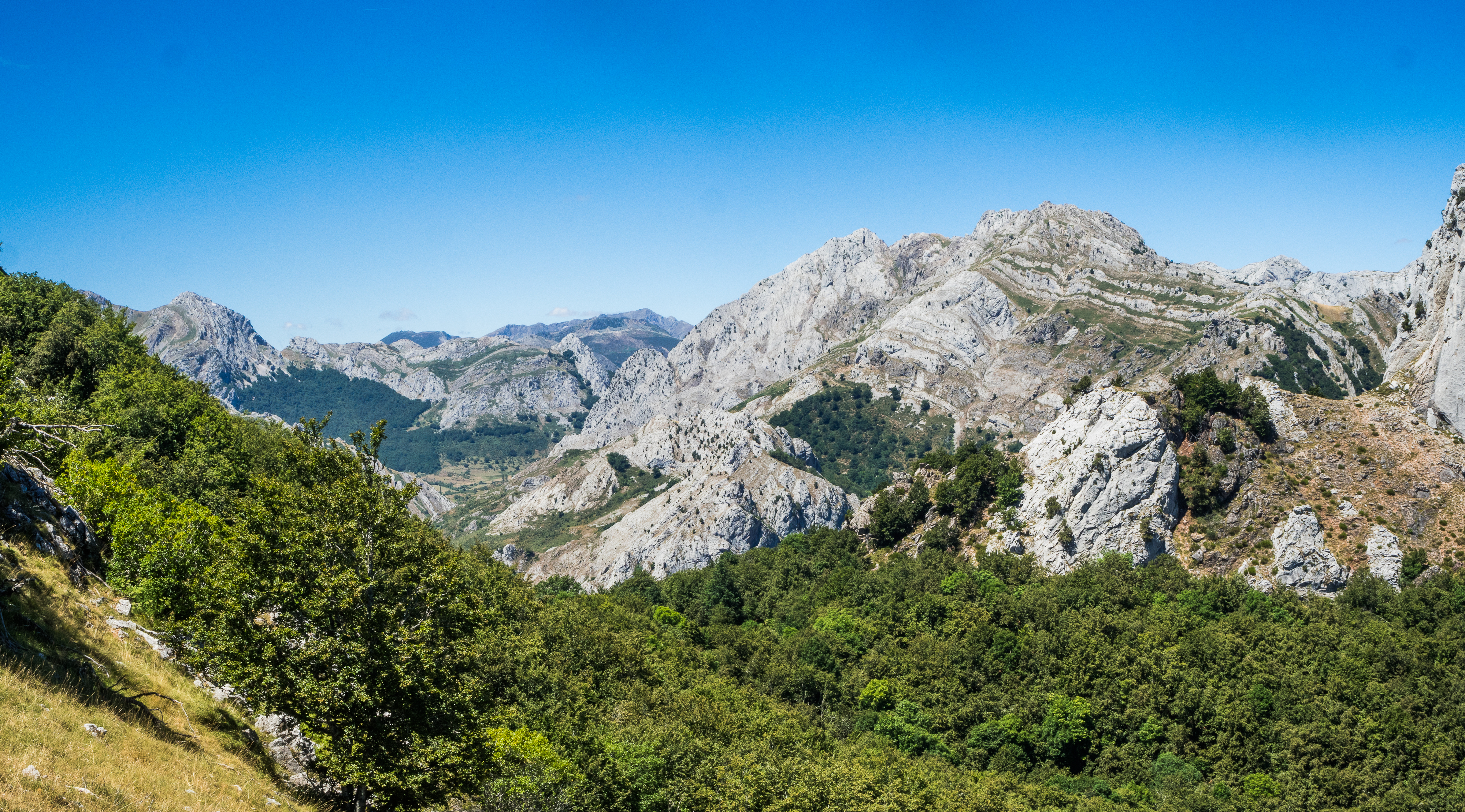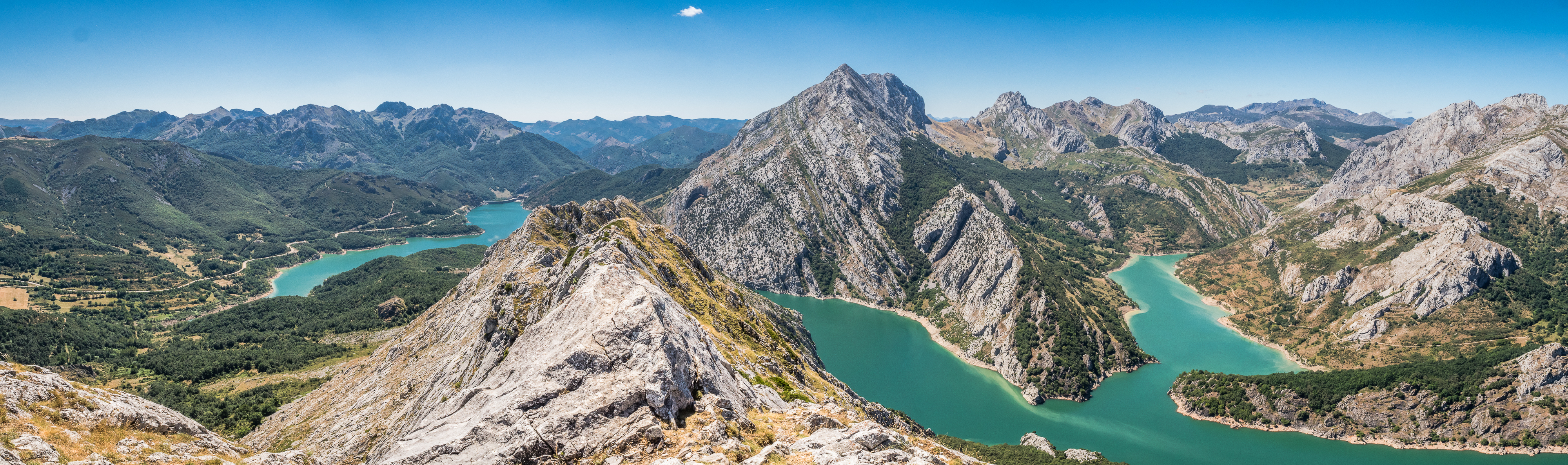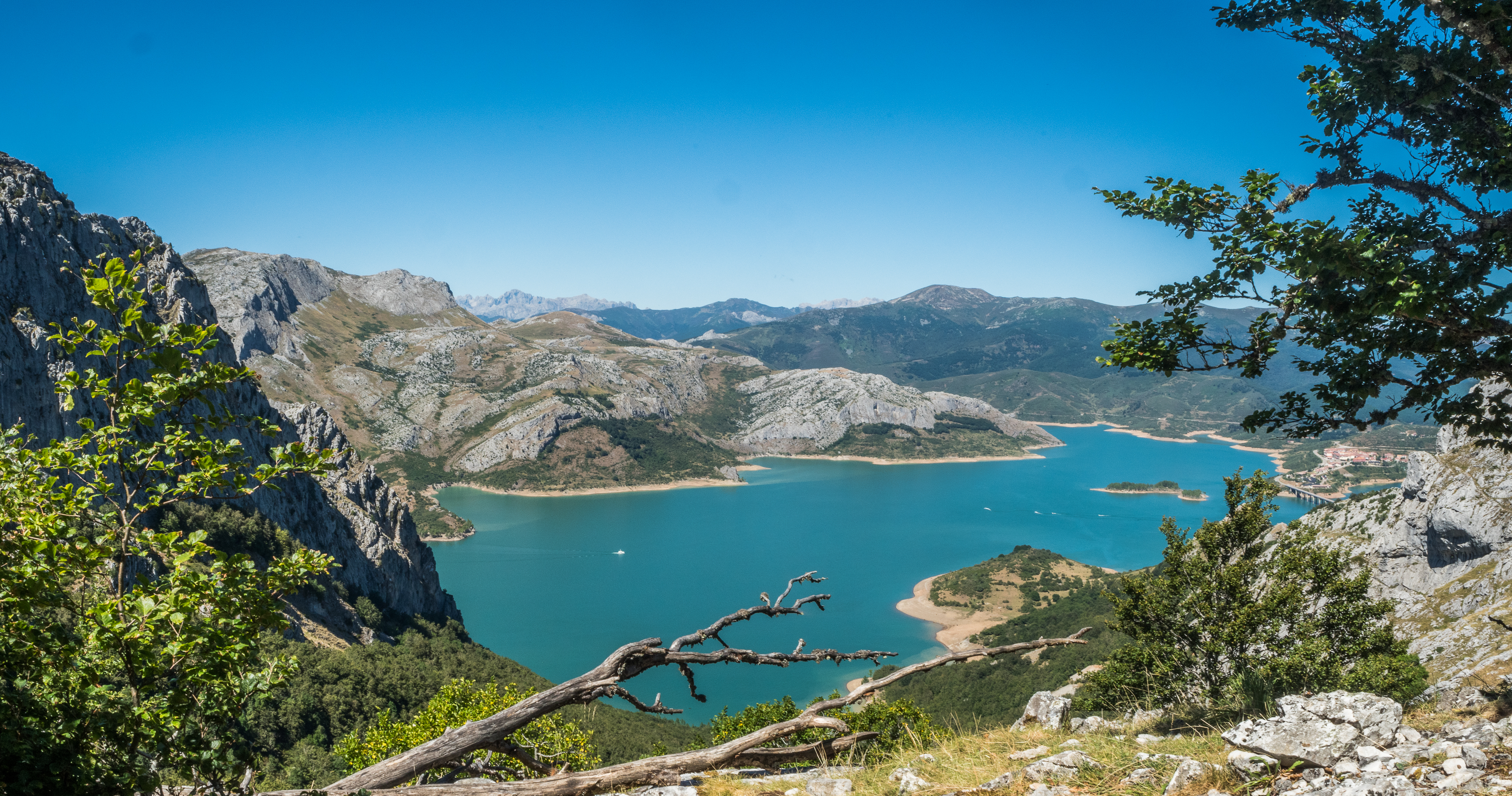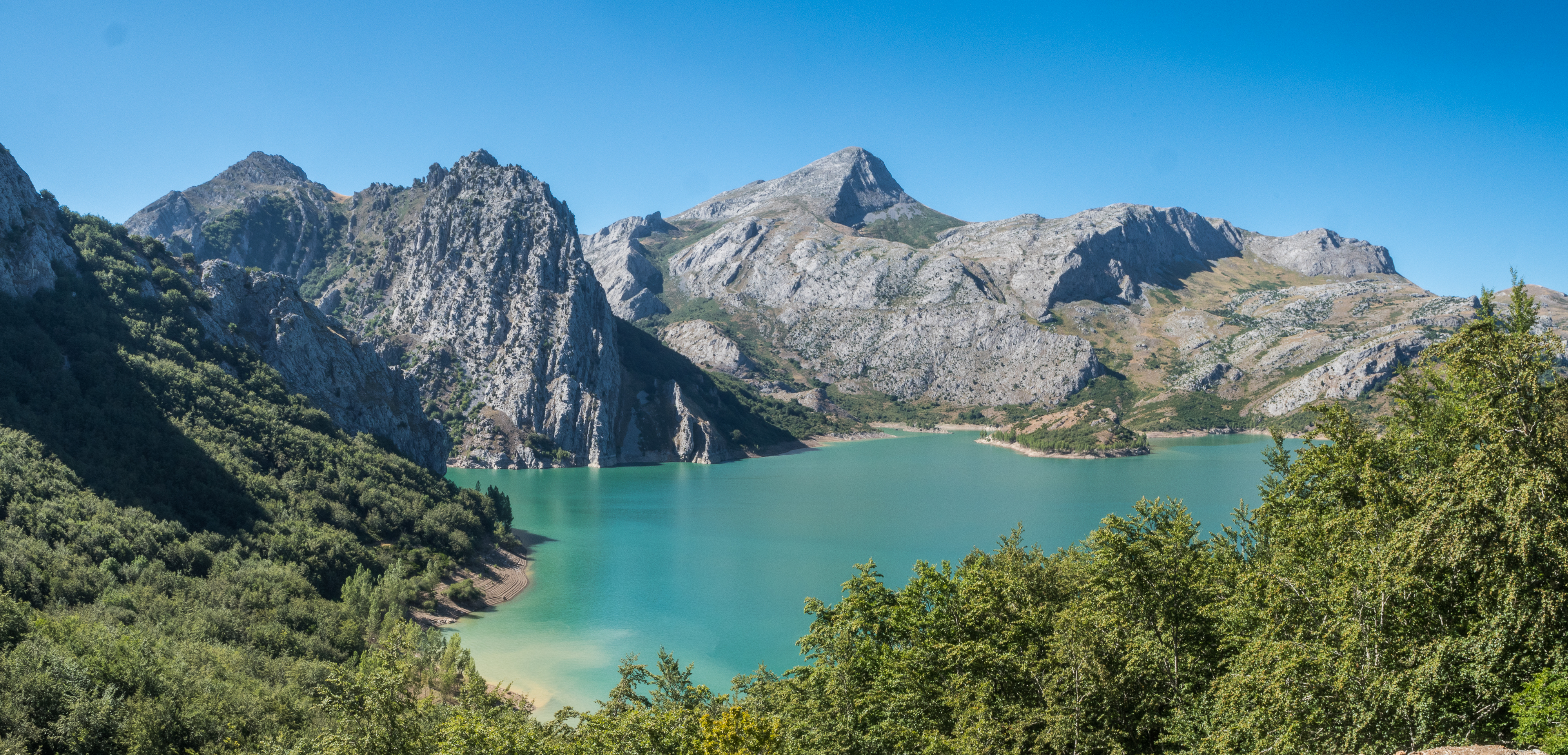 Pico Gilbo (1679 m) – when you look towards the steep peak towering above the bridge of Riaño, it seems almost inaccessible, like you would not guess there is a path that gets you to the summit without any need of climbing equipment. The first part is easy, the wide flat dirt road follows one of the fjords of the reservoir. Take the path on your left hand side after roughly a kilometre and start climbing through the oak forest Hayedo de Vallarqué towards the meadow Collado de la Pedrera. You will see the peak in front of you. Keep climbing to the other side of the crest, where the first views over the reservoir open in front of you. The trail then leads you on the side of the mountain just below the summit, where you take a narrow channel that will take you to the top. The trail is not always perfectly visible, but it’s intuitive, as there is no other way to go. The slope is very steep at this point, so you have a wall at one side and emptiness on the other. Maybe do not attempt this hike if you suffer from vertigo. The hike is not long (about 9 km / 720 m vertical climb overall), but the final ascend is rather demanding. You will be rewarded by most amazing views from the peak. To descend, you retrace your steps to Collado de la Pedrera again, and cross leaving it on your right hand side, then descend through another centenary oak forest Hayedo de las Biescas. You will soon get back to the flat dirt road, and follow it along the water all the way to the bridge. On an nice summer day you can even go down to the shore and swim in the reservoir. Wikiloc trail here, to have an idea. There is also a away to ascend on the steeper crest from the opposite face of the mountain, but you will need equipment and an experienced guide for this. Most adventure agencies in the area can organize it for you.