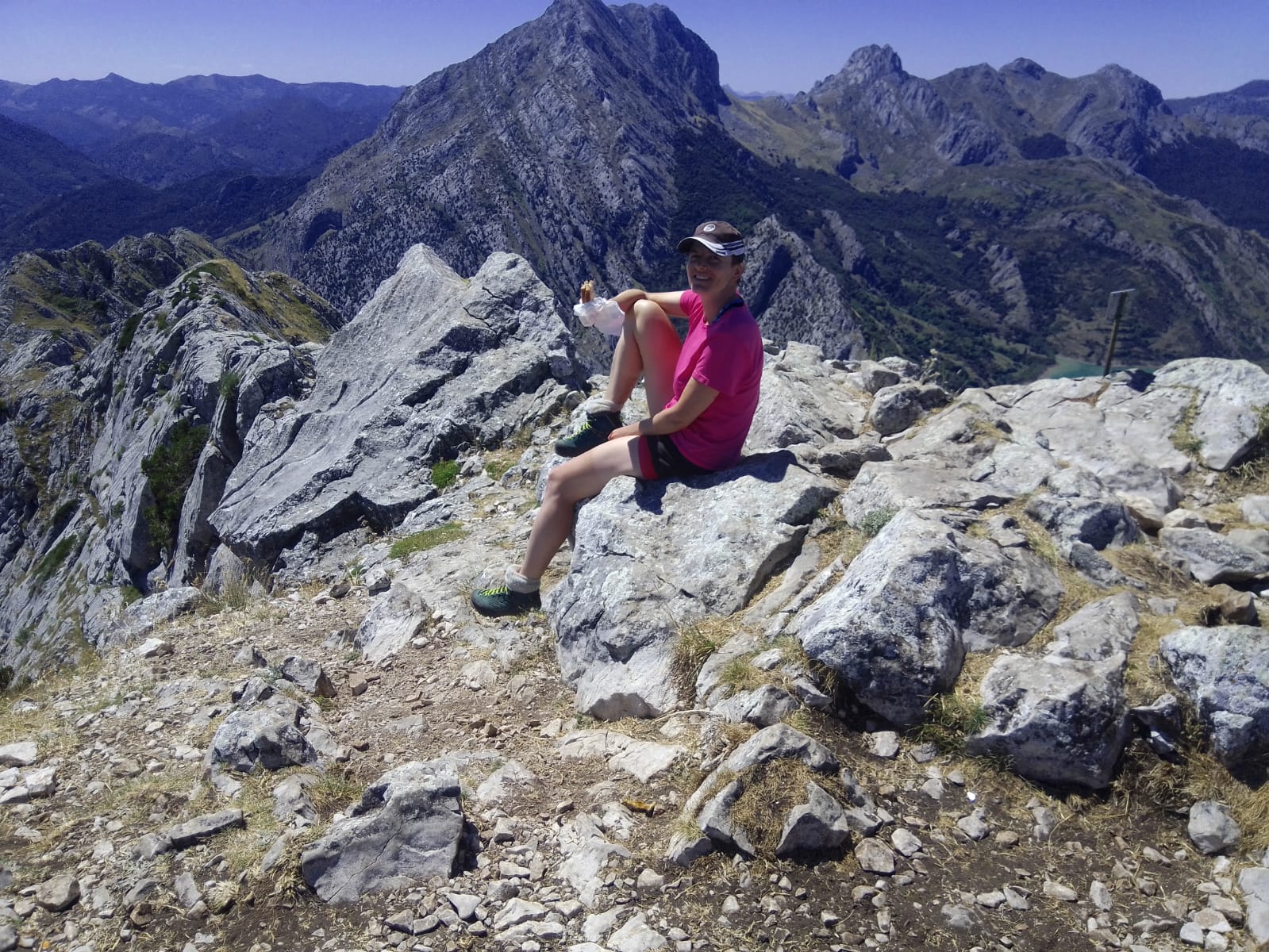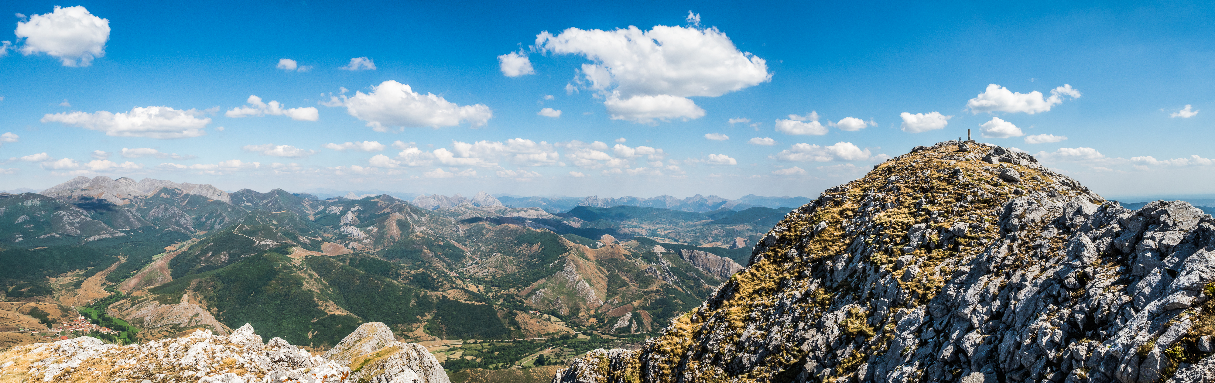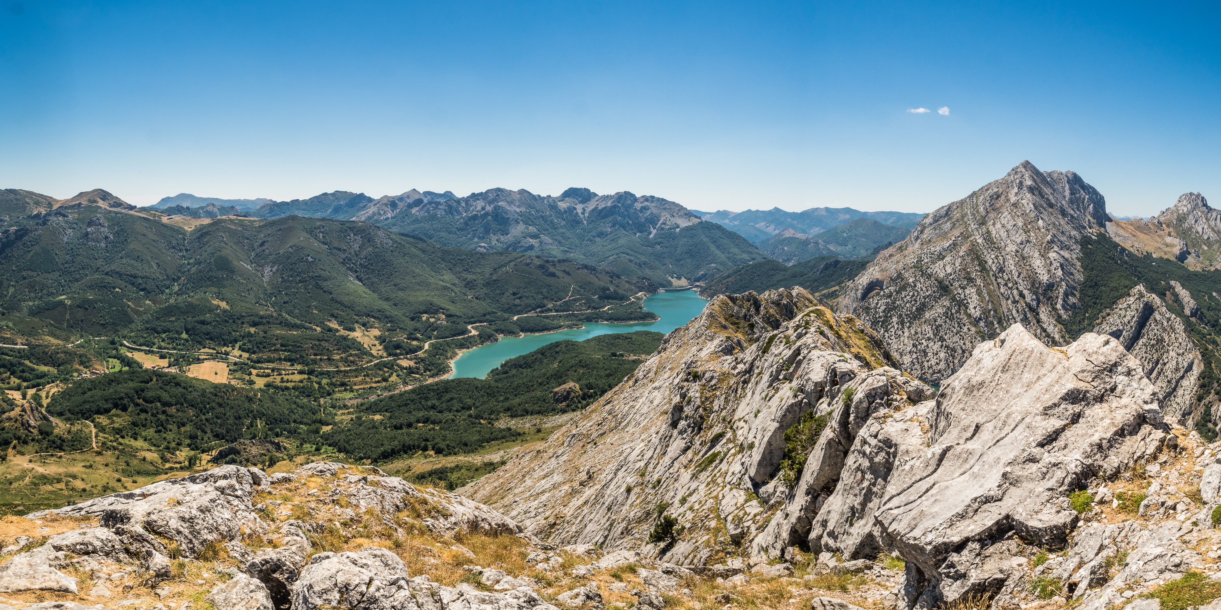 Pico Susarón (1878 m) – from Puebla de Lillo. You simply cannot get this wrong. The majestic peak towers above the village of Puebla, there is no way you can miss it. Just follow the dirt road that leads towards it. After roughly two kilometres, cross a meadow on your left hand side and start climbing up a channel between the peaks of El Piñuelo and Susarón. There are two ways of tackling the summit, I’d recommend the one we did. Once you arrive to the pass, take a small path on your left hand side that leads just below the crest. It’s marked by tiny cairns. The ascend is gruelling, for several reasons: there is no shade, it’s steep and you see the summit above you for the entire time and you are not getting any nearer to it. The reason I think this is the better way is that the terrific view from the top is concealed until you are there. But when you reach the summit, the entire reservoir of Porma is at your feet, it’s the most rewarding feeling. Certainly rewarding enough to make me instantly forget the previous two hours of swearing under my (short) breath. Because after years and years of hiking I still don’t really like walking uphill. Yet I somehow seem to forget that bit every time. Only joking. The view is magnificent and totally worth the effort. To descend, take the trail on the opposite side of the mountain (it’s marked by blue – maybe yellow, I cannot remember now – dots). This will take you back to the pass, where you can decide whether you want to retrace your steps through the channel or rather walk around El Piñuelo for a longer and gentler descend through the oak forest and back to the dirt road that leads back to Puebla. Wikiloc trail here.