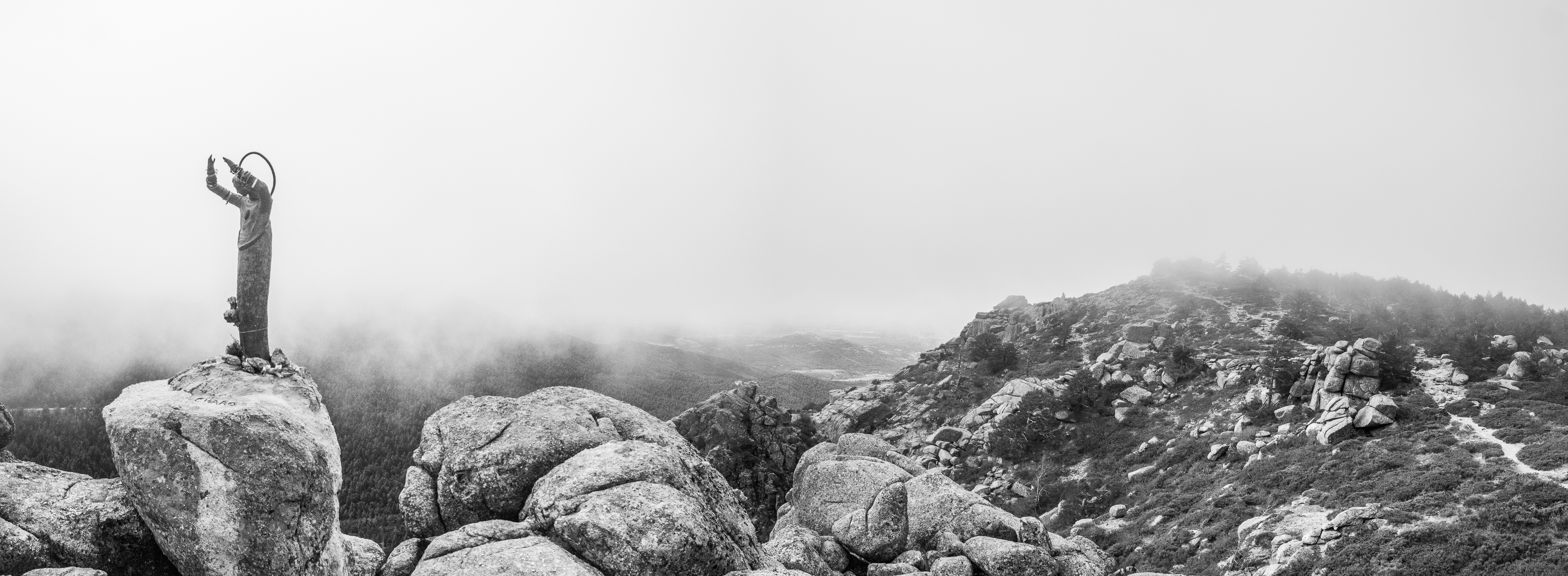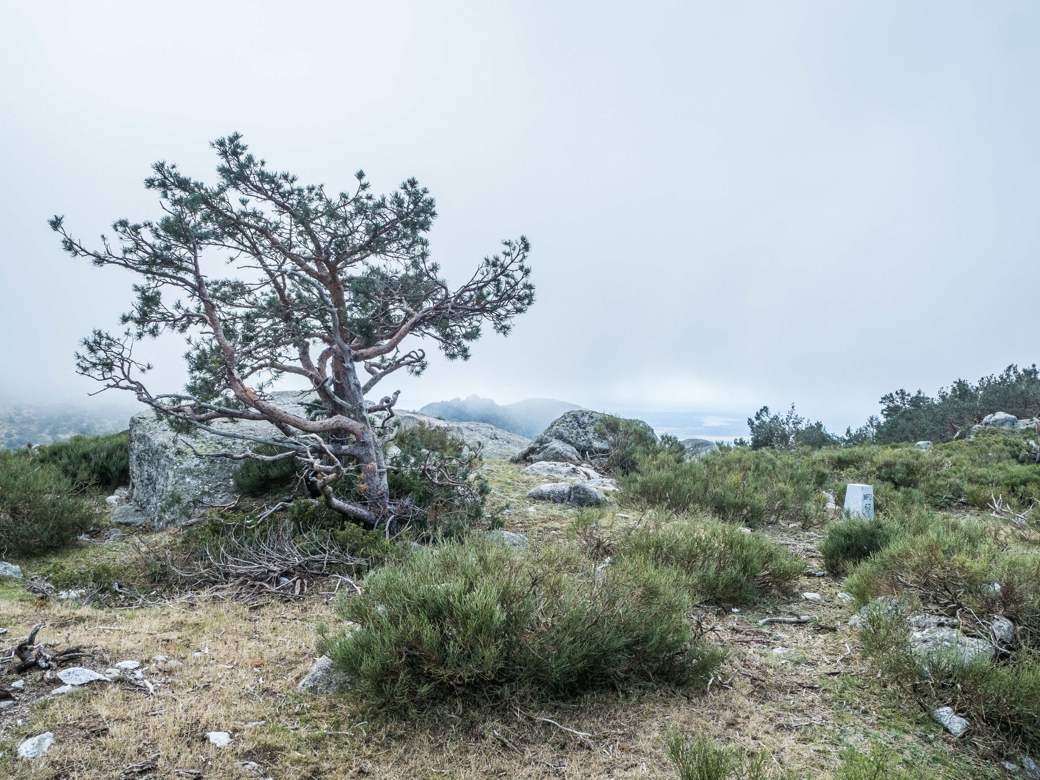 Description: take 691 bus from Moncloa to Cotos, get off at Puerto de Navacerrada (which is also where you park if you are using your own car). The bus ride takes about an hour, so consider getting on an early one in summer to avoid the heat. This was not an issue as the temperature on the day of my hike was around 3°C. On the other hand, I was walking on the edge of clouds, so the photos came out quite well. From the bus stop, follow signs for Cerro del Telegrafo, after which you will clearly see the path, that will take you over all seven peaks (well, six, the seventh is Majalasna, which is I ascended earlier this year). From Pico 2 you will have to descend to Collado Ventoso, where you take Camino Schmidt that leads back to Puerto de Navacerrada. It is an extremely popular hike, you cannot get lost. Wikiloc for your convenience here.