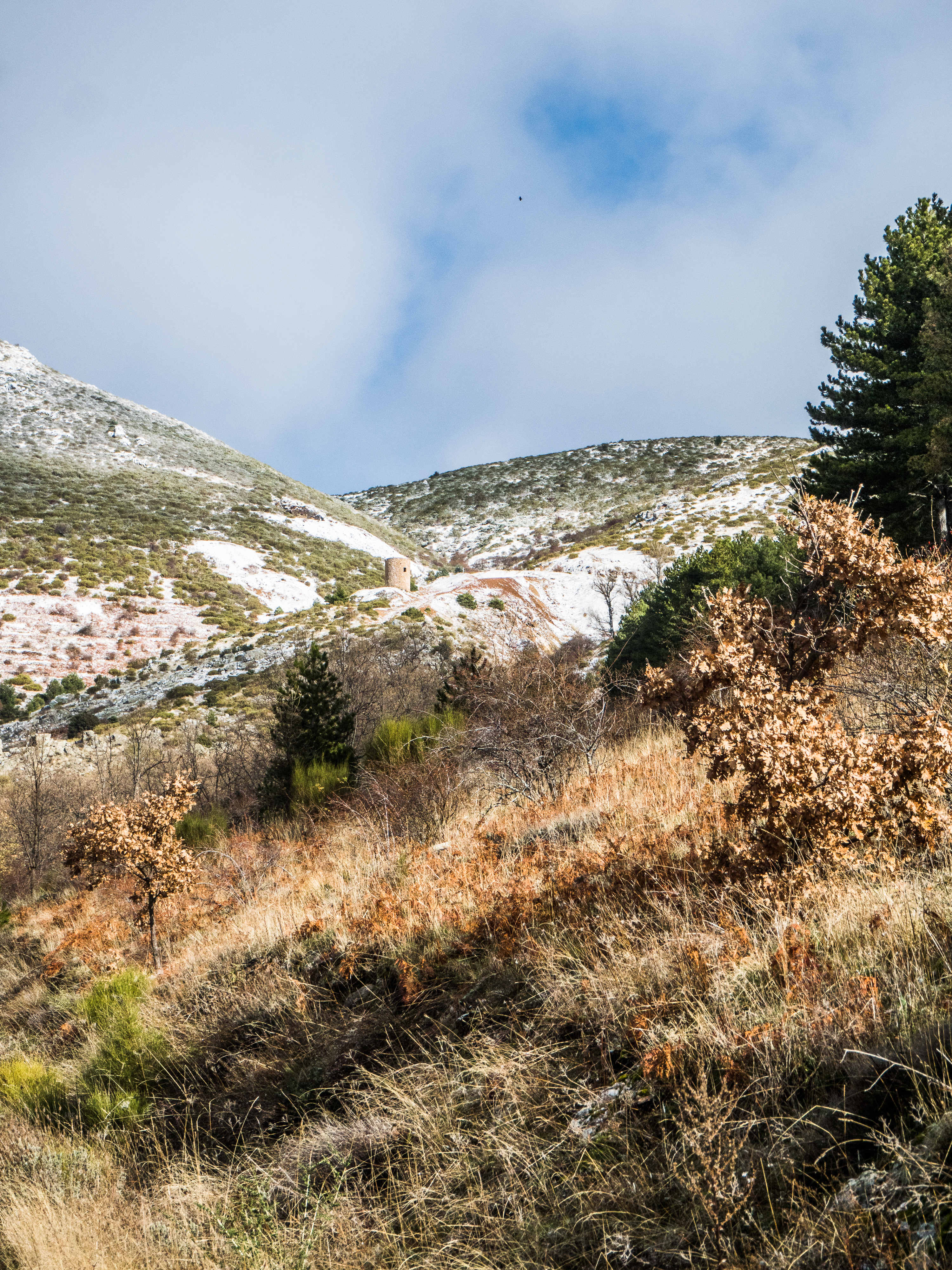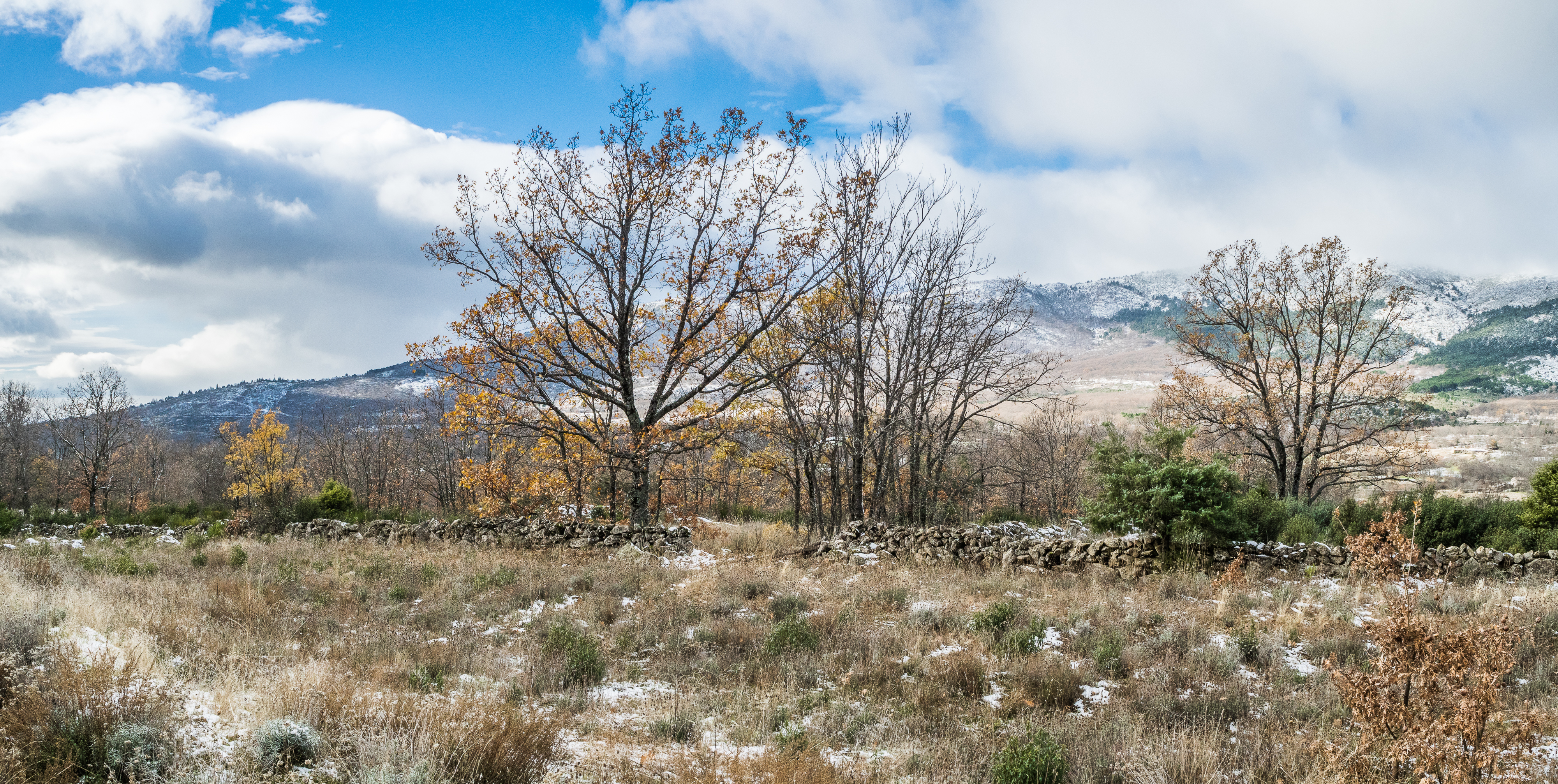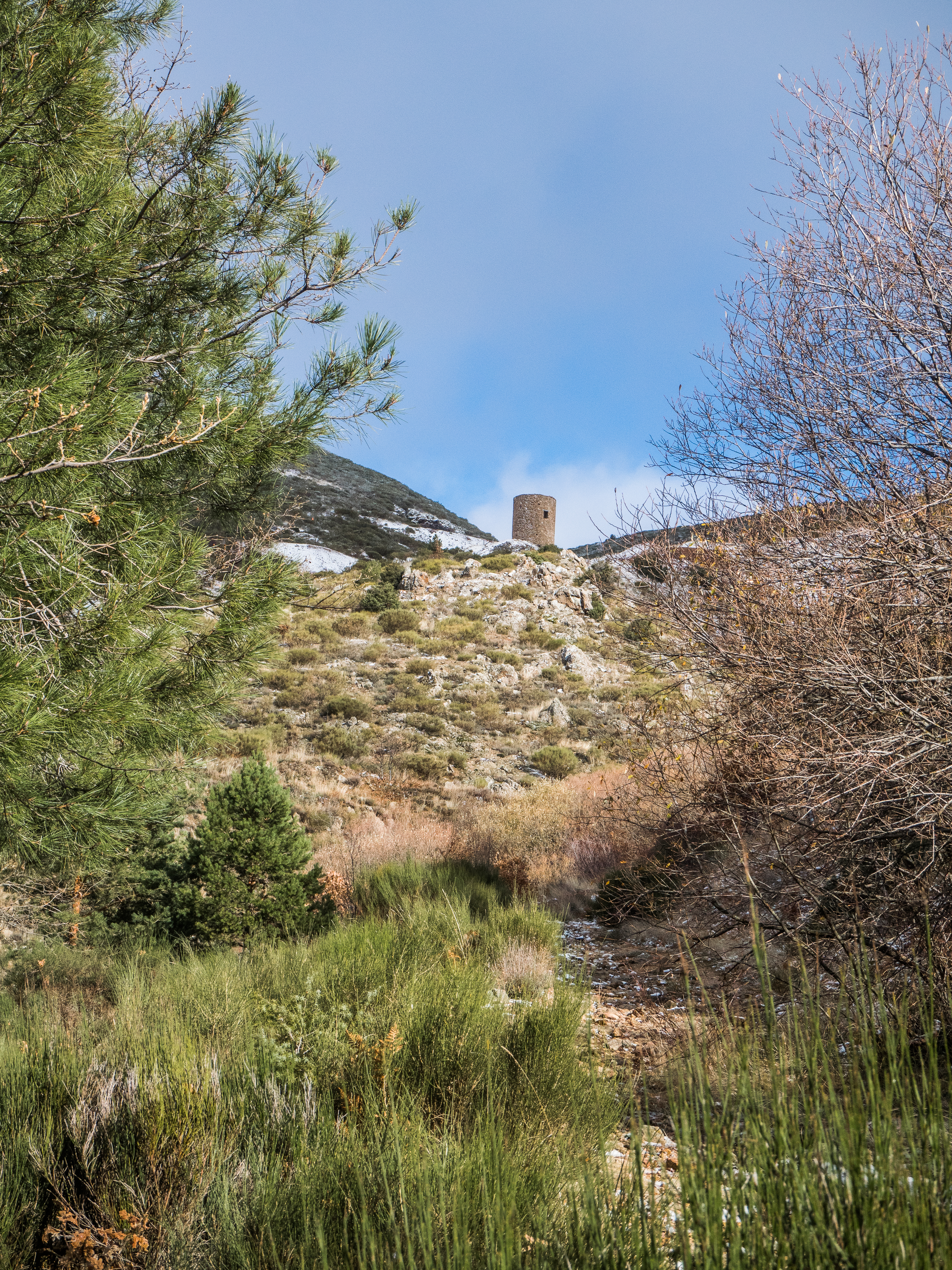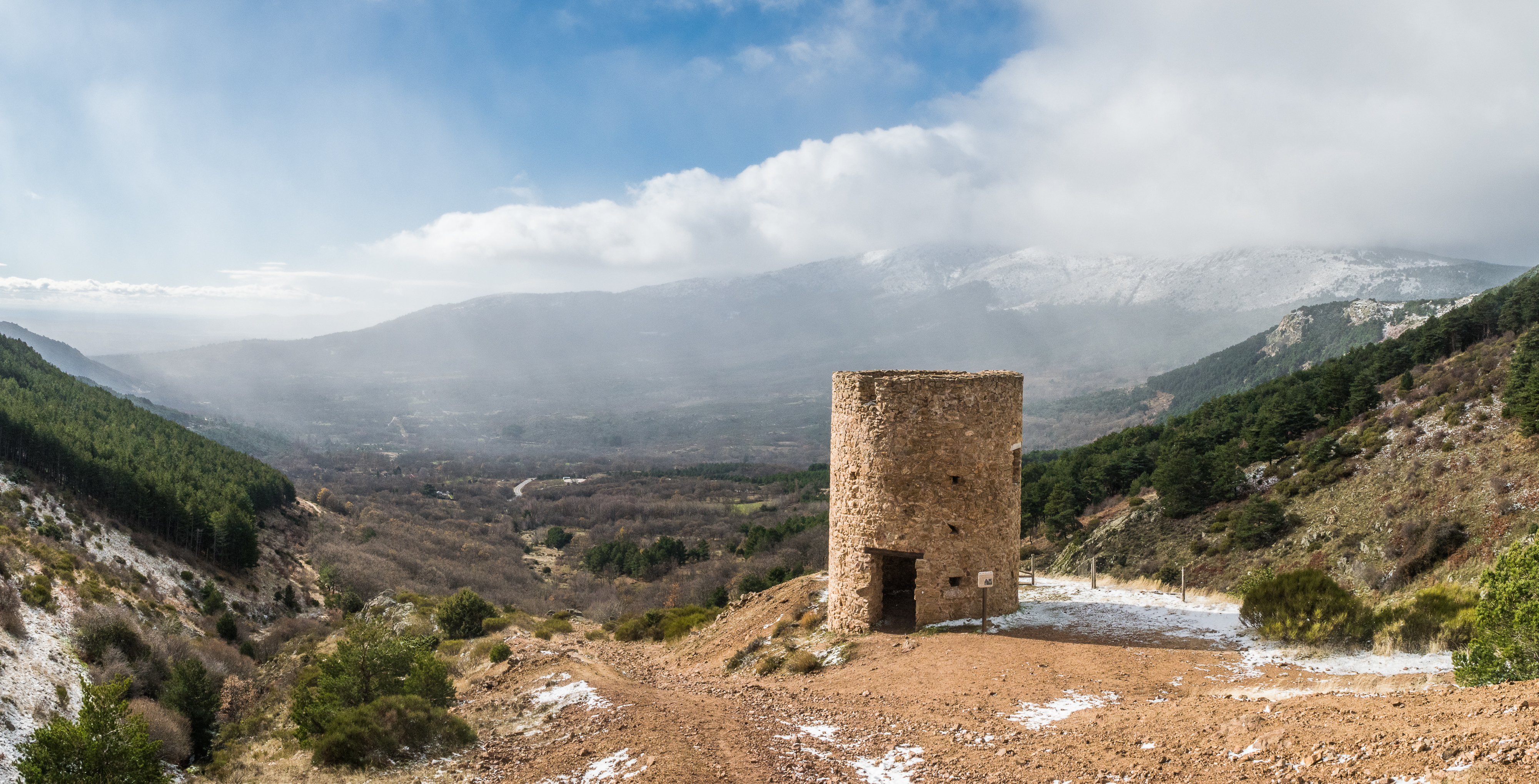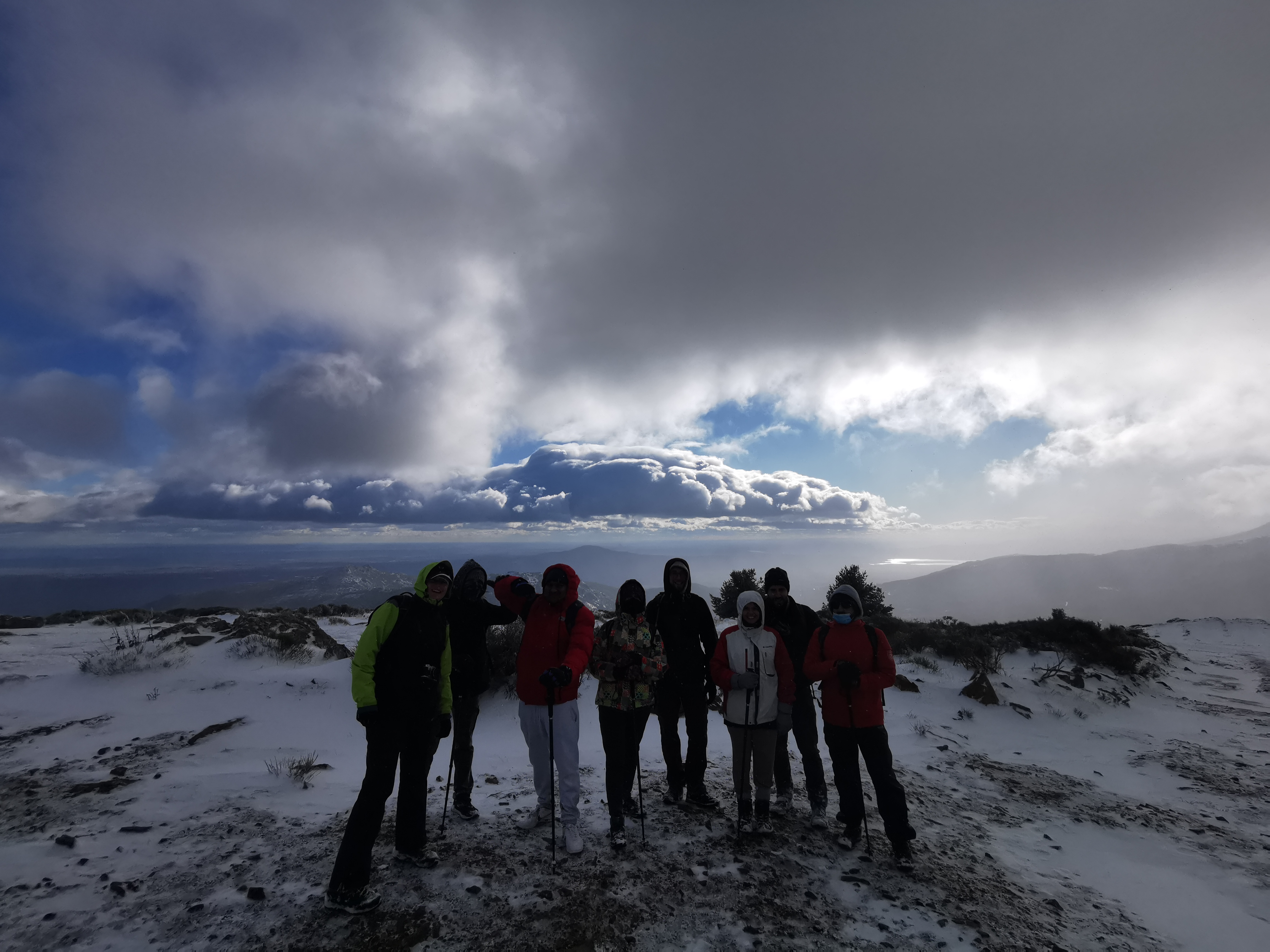 Description: Follow the dirt trail from the parking lot by the football pitch, by the time you walk around the foot of the mountain, you will see the tower of the silver mine in front / slightly above you. You will reach it in less than half an hour. Keep climbing along a little stream in the channel between the peaks until you reach the meadow of Collado Abierto. I suppose on a normal day, the path is clearly visible. On the day of our hike it took some guesswork, as the snowline started just above the tower, so we were walking in the stream rather than along it. We started the hike with a beautiful mild autumn day, but up in the open we walked into a snowstorm and strong freezing winds, which accompanied us all the way to the peak (seemed longer than it was, I estimate the climb from Collado Abierto to Cabeza de la Braña didn’t take more than 30 minutes). At the top we took refuge in the forest and waited for the whole group to arrive, had some cookies and tea and a little rest (it realty was cold). To descend, just follow the treeline on your right hand side, and you can either walk through the forest or on the ridge, it doesn’t really matter, both options will lead to the esplanade of Navasaces, almost to Puerto de Canencia, where you will once again see the valley of Vallehermoso in front of you and the trail will take you back to the football pitch. Wikiloc for your convenience here.
