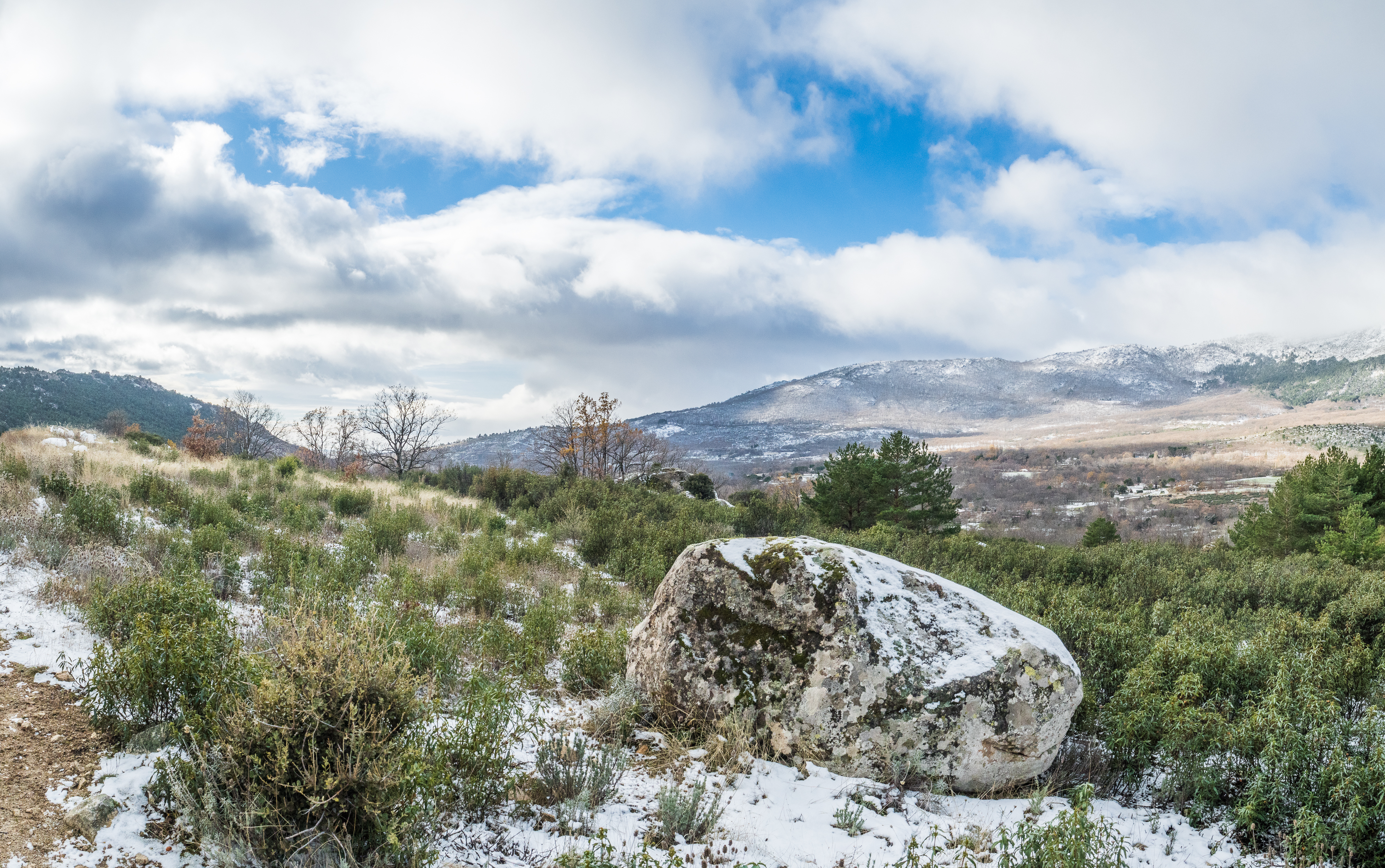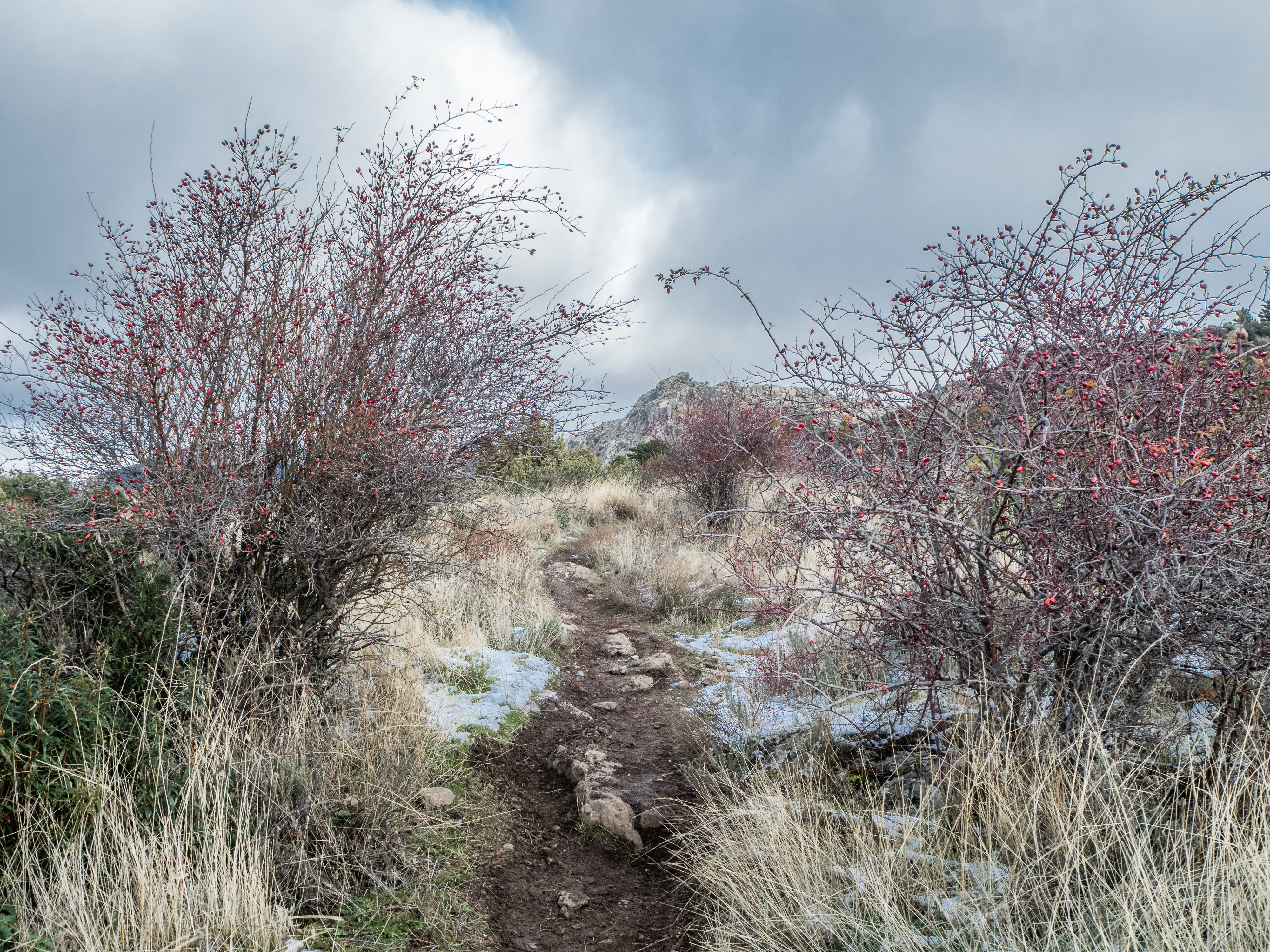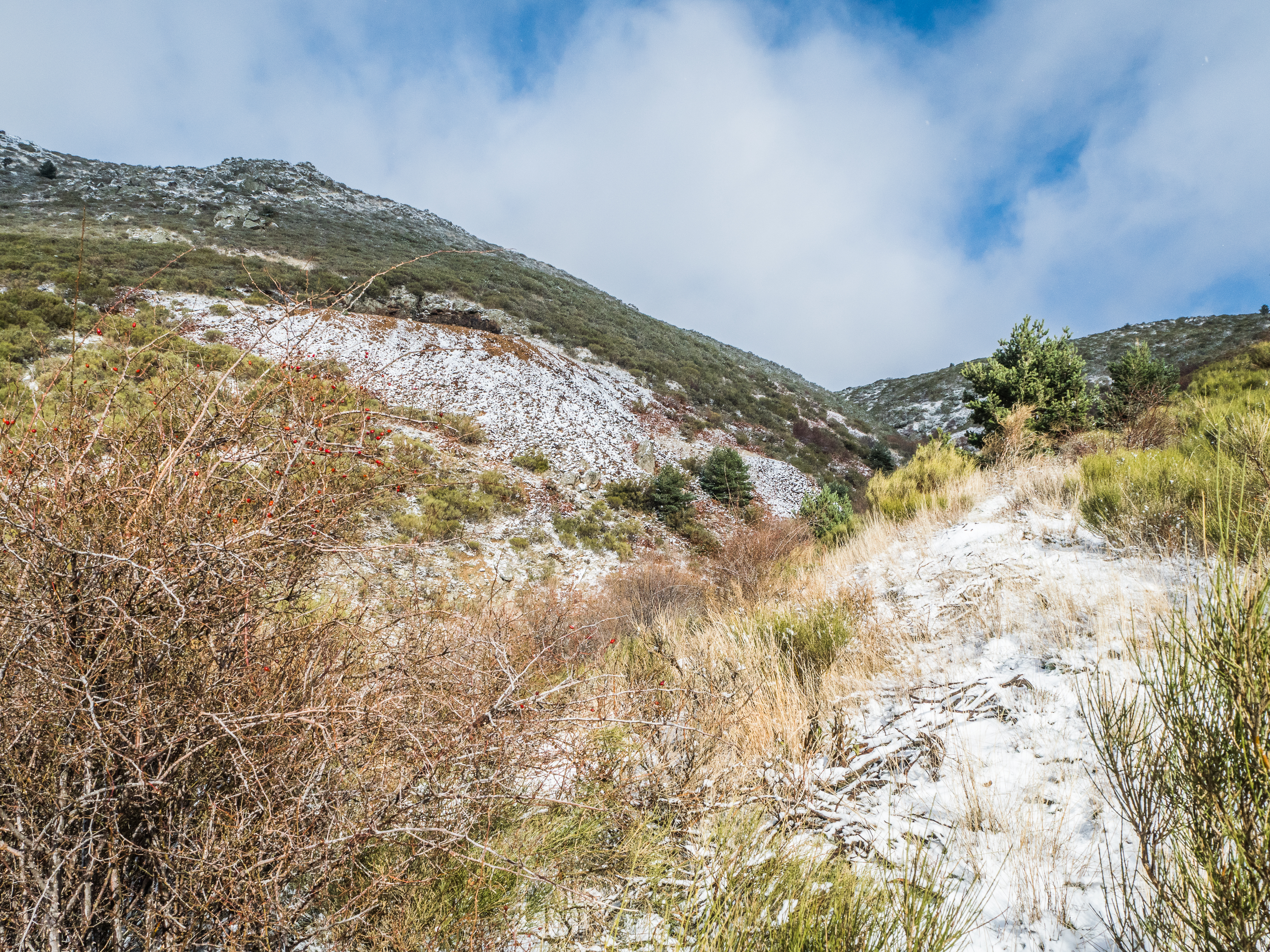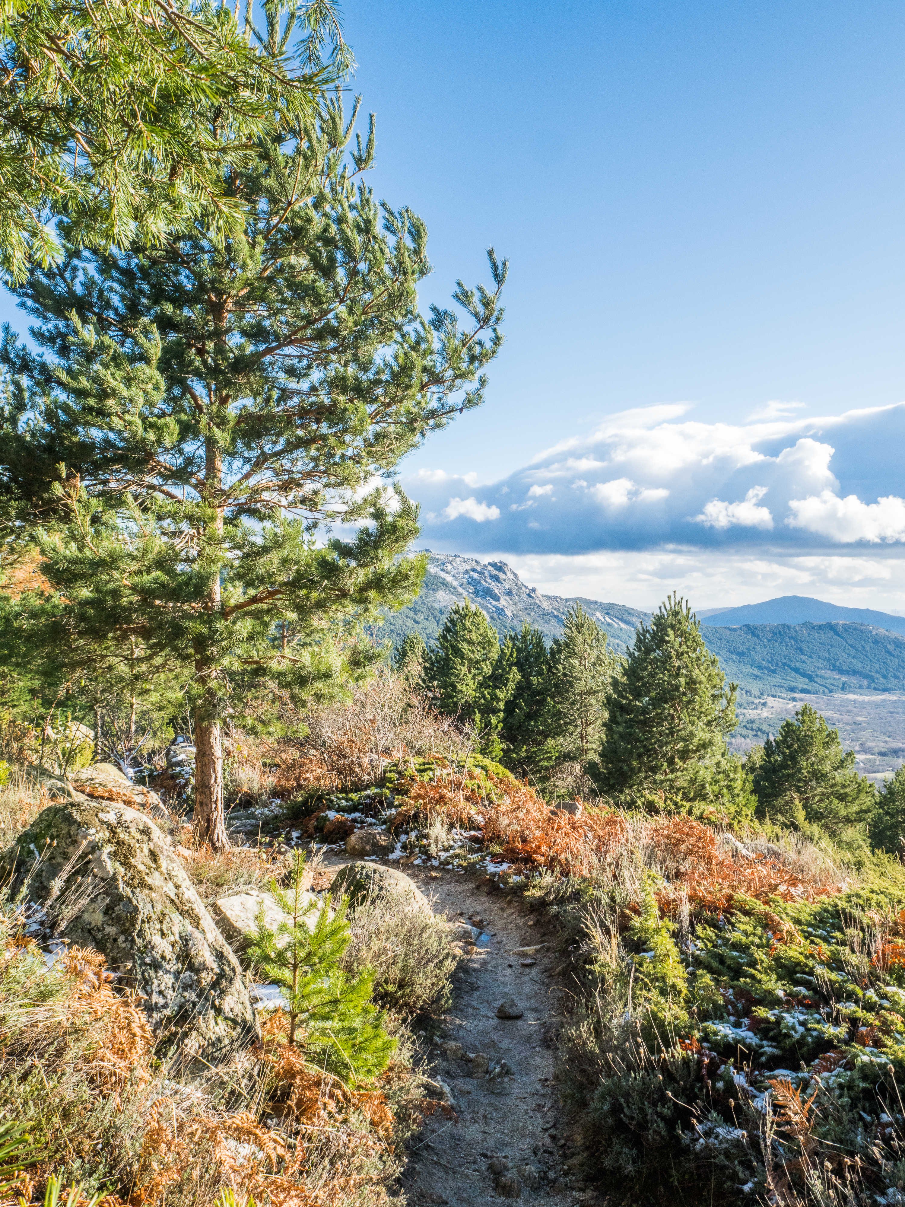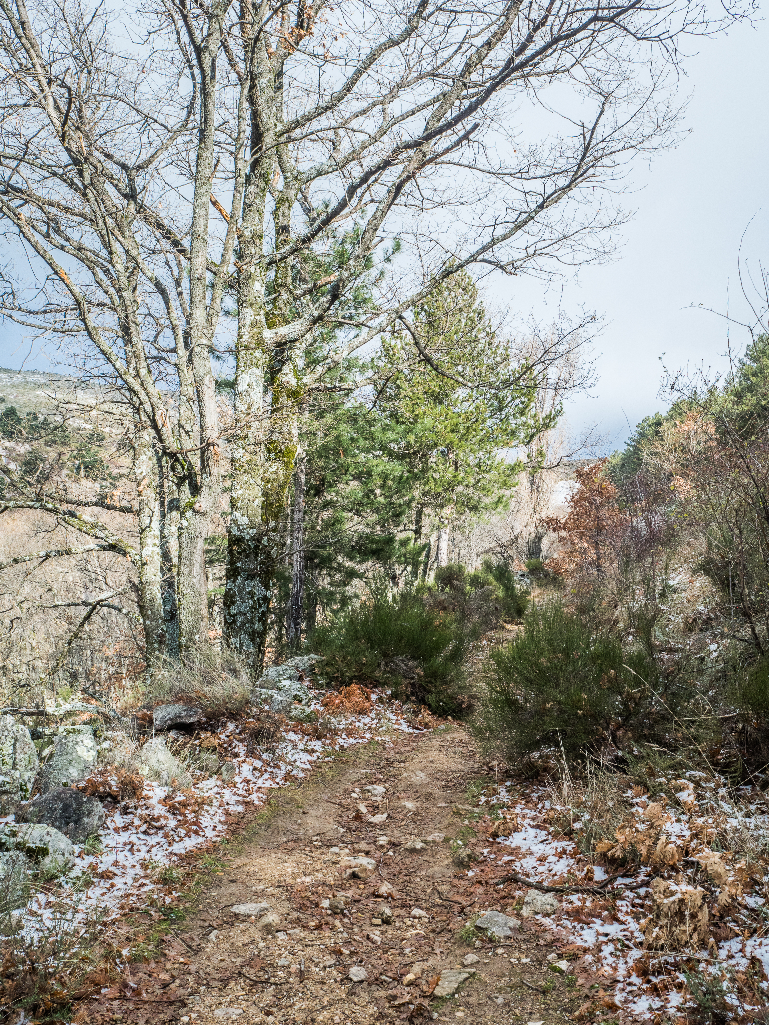 Few words about winter hiking: I am sure I don’t need to stress this too much, but do dress well. Layers can always be taken off, but hiking while being cold is extremely unpleasant and dangerous. Mountains, even relatively populated mountains as those around Madrid, are unpredictable in winter. Also, wear good shoes. Trails that are wide and comfortable in summer get slippery in winter. Last thing you want is to get a heavy sprain and wait to be rescued in weather conditions that prevent helicopters from landing. Light summer trekking shoes are not a good option, wear sturdy boots. I personally wear those in summer too, but I have dodgy ankles, so I need extra support. And most importantly, carry extra food (and a thermos with hot tea, if possible). Our bodies burn more energy in cold weather, so make sure you have fuel. Do not blindly rely on technology either. Batteries run flat quickly in freezing temperatures, so be prepared that your cell phone may die on you. And last but not least, although I am a huge fan of solitary hiking, bringing a buddy or two when hiking in extreme weather conditions may be a good idea. Other than that, do not let the temperatures scare you off, winter is a beautiful time to be out in the open. Just come prepared and enjoy every minute!