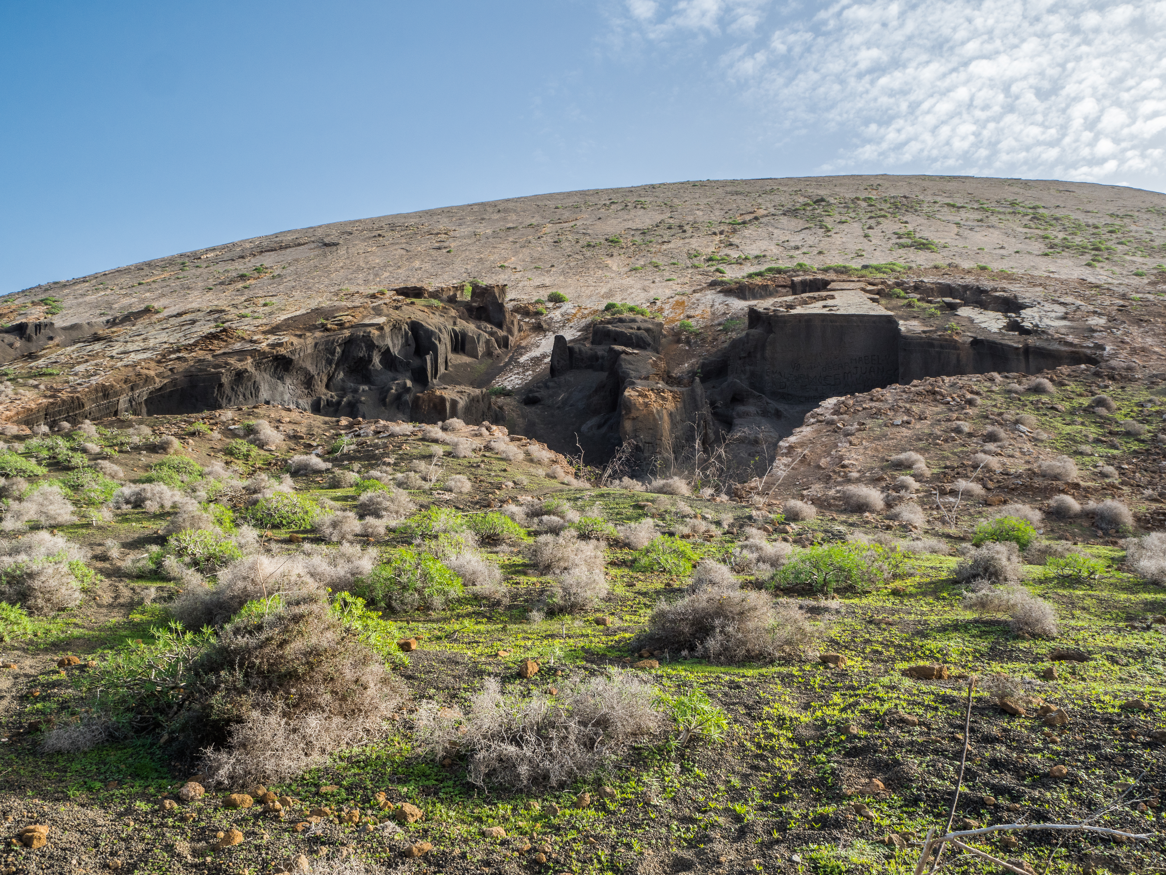 Vulcan del los Cuervos: super easy hike, children- and pet-friendly. Starting point is from the parking two thirds into the LZ-56 (southbound), it’s clearly marked. The trail will take you through the lava fields around the volcano and inside the crater, the whole hike is about 4 km long and possibly doable under an hour, it took me longer because I was either taking photos or waiting for people to piss off from my shots. I was there just before sunset, so some of the photos are rather bad, but you’ll get the idea. Wikiloc here.