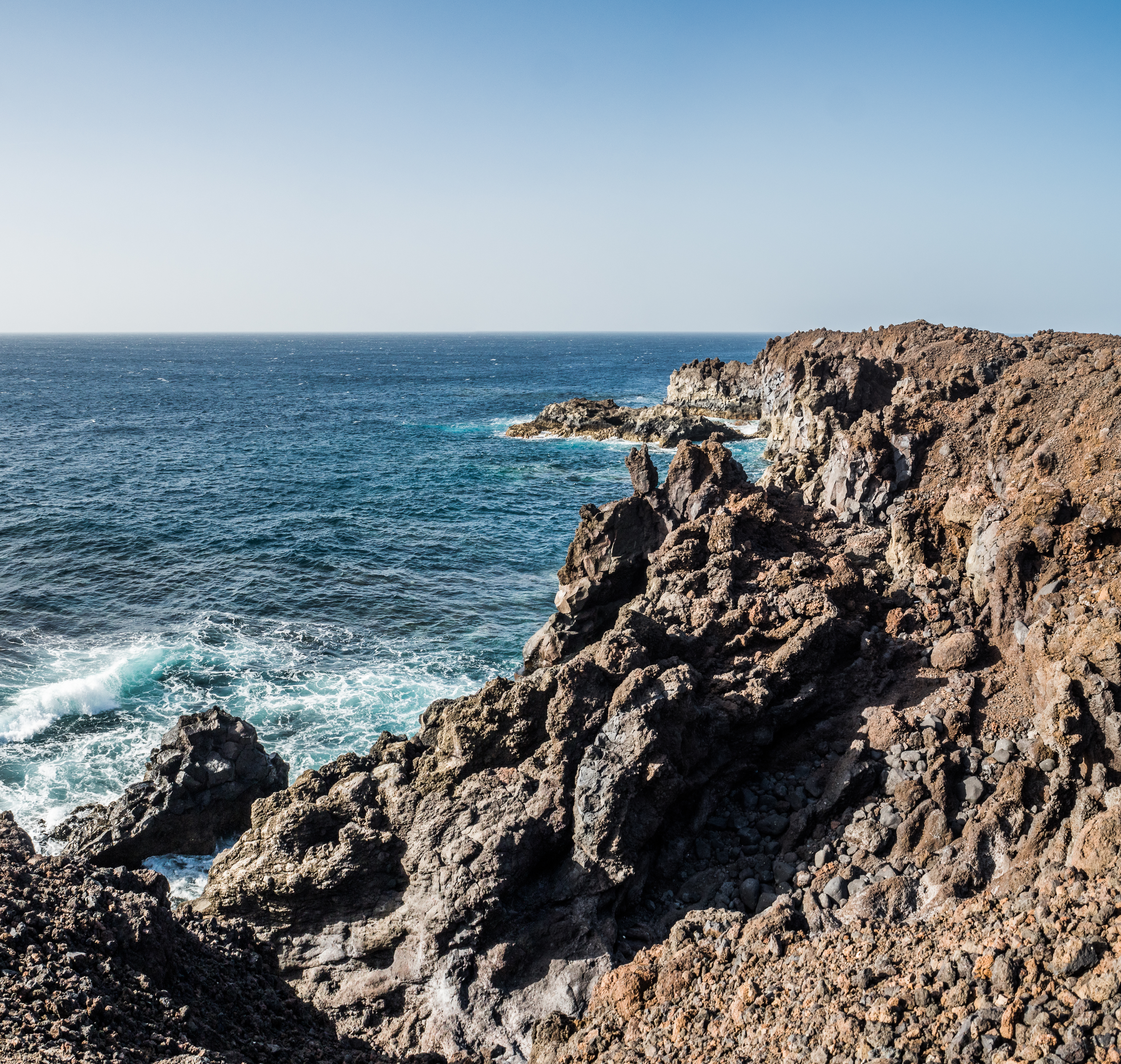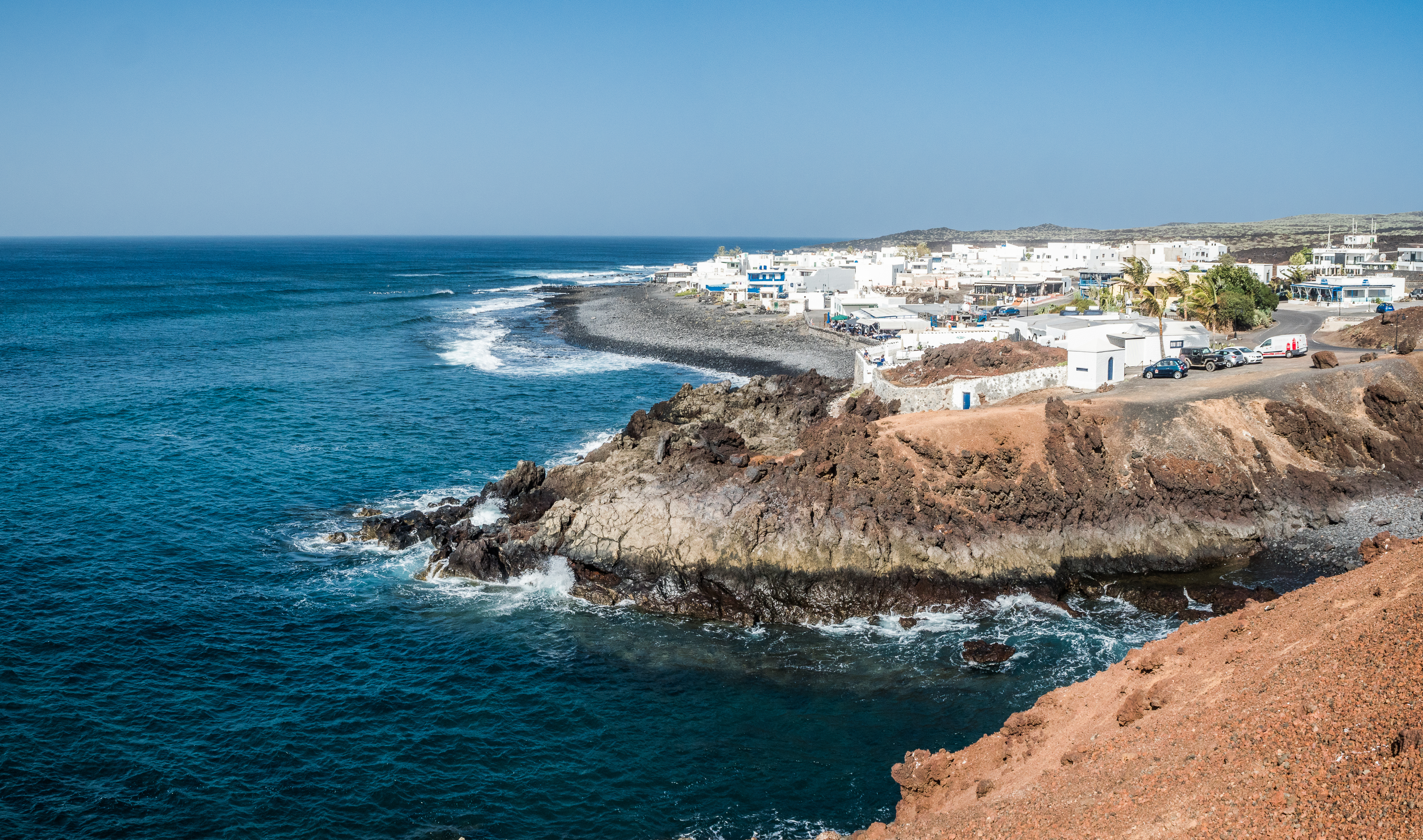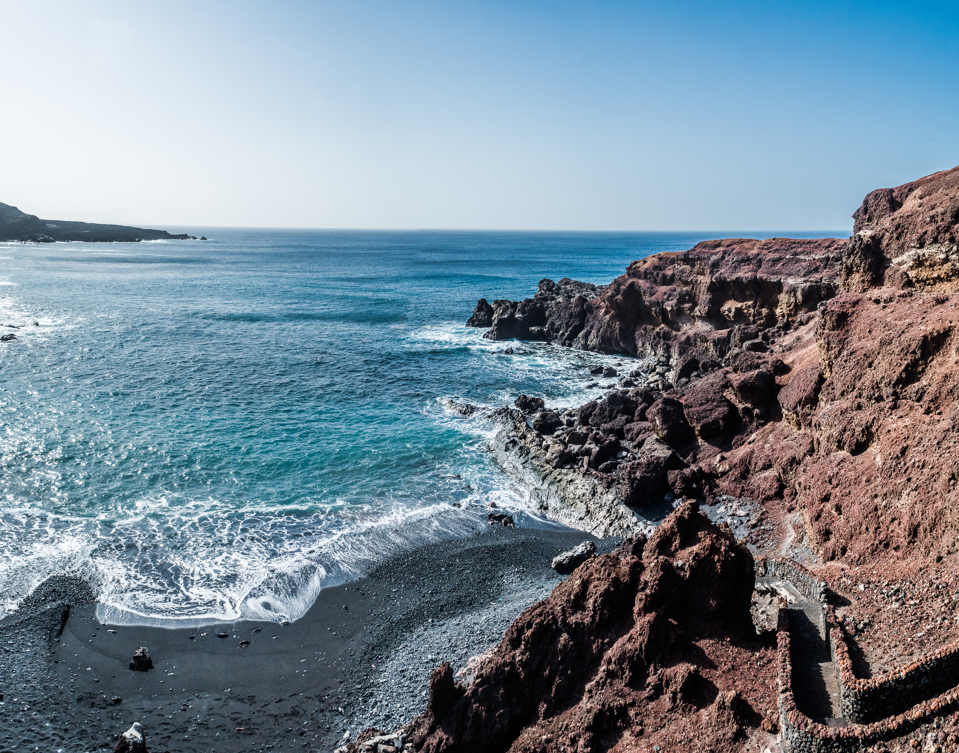 Visit the south of the island: I drove and was was quite grateful not to have attempted to ride the bike there, because it was so windy that I struggled to open the car’s door. There were still cyclists around, but they must have been either really strong, or really brave, or really struggling. I didn’t have a plan in mind, I just headed south and stopped whenever something caught my eye. Salinas de Janubio is a natural lagoon created by volcanic activity, home to many species of birds who nest here and feed on the little crustaceous (artemia salina) that gives the characteristic pink colour to the water, much like the flamingos in South America. Janubio saltworks is also the island’s oldest industry (the salt was used for fish preservation) and the visit to the facility must be rather interesting, but it was closed at the time of my visit. From there I took the coastal road to El Golfo that has many viewpoints where you can park for a moment and admire the waves breaking on beautiful rugged cliffs. I stopped at black beach of Playa de Bermeja for a skinny dip (but two local girls explained to me when was the right time to get into the ocean and avoid currents, and it was just a dip, swimming is dangerous, so don’t try it), then continued to El Golfo and Playa de los Clicos to see the beautiful bright green lagoon there. There is a coastal trail heading north from the village that you can hike (about 5 km loop), but I figured that the views would not be substantially different to those from the road, so I headed back inland and hiked the Vulcan de los Cuervos instead.