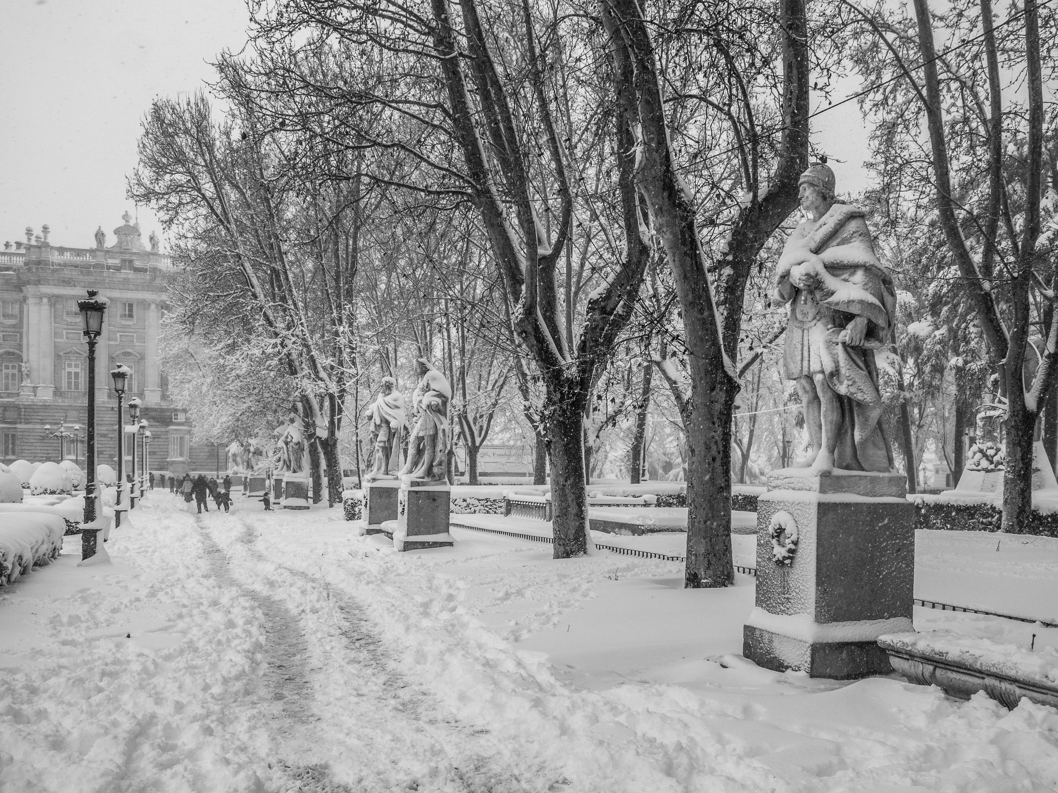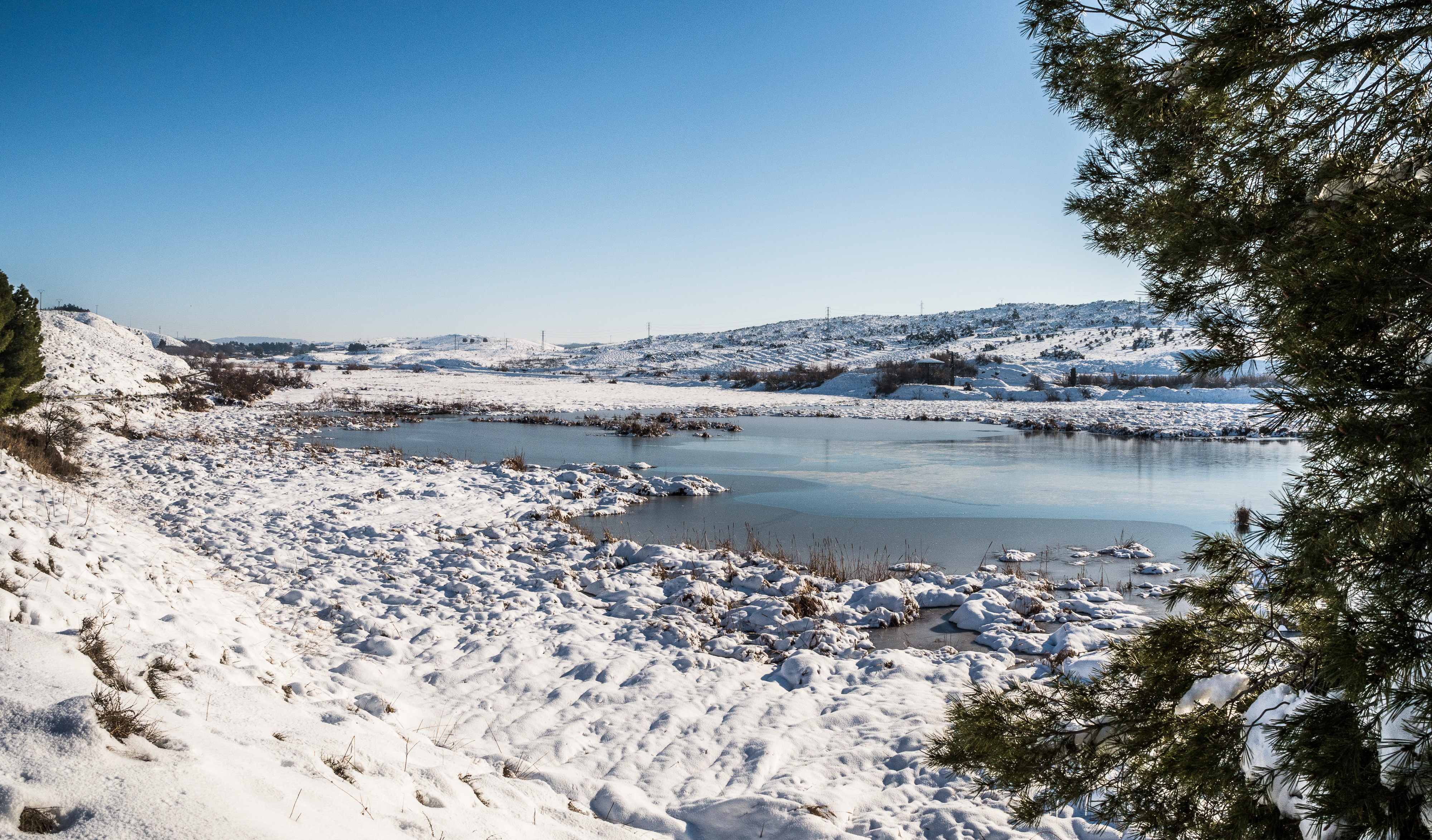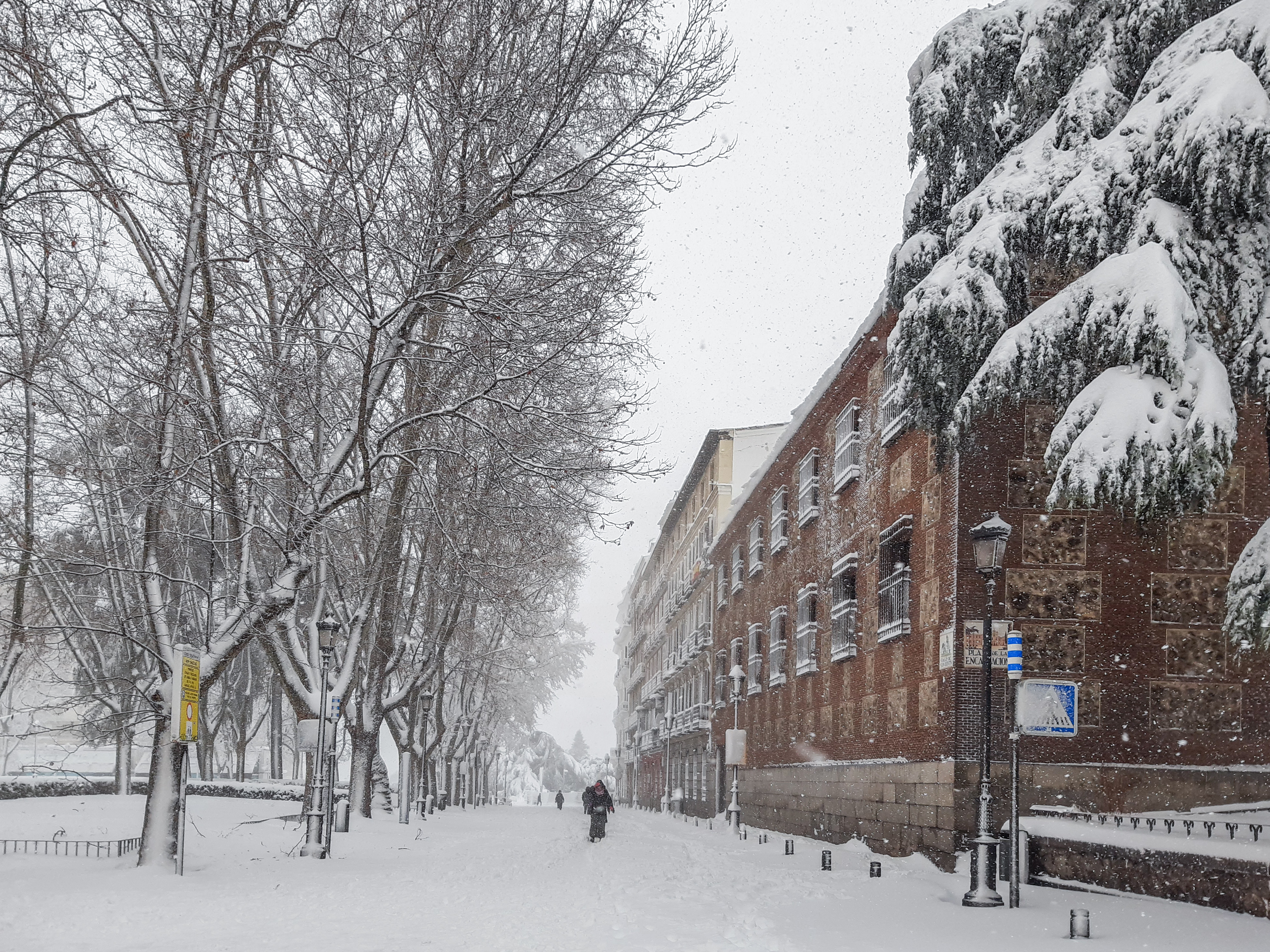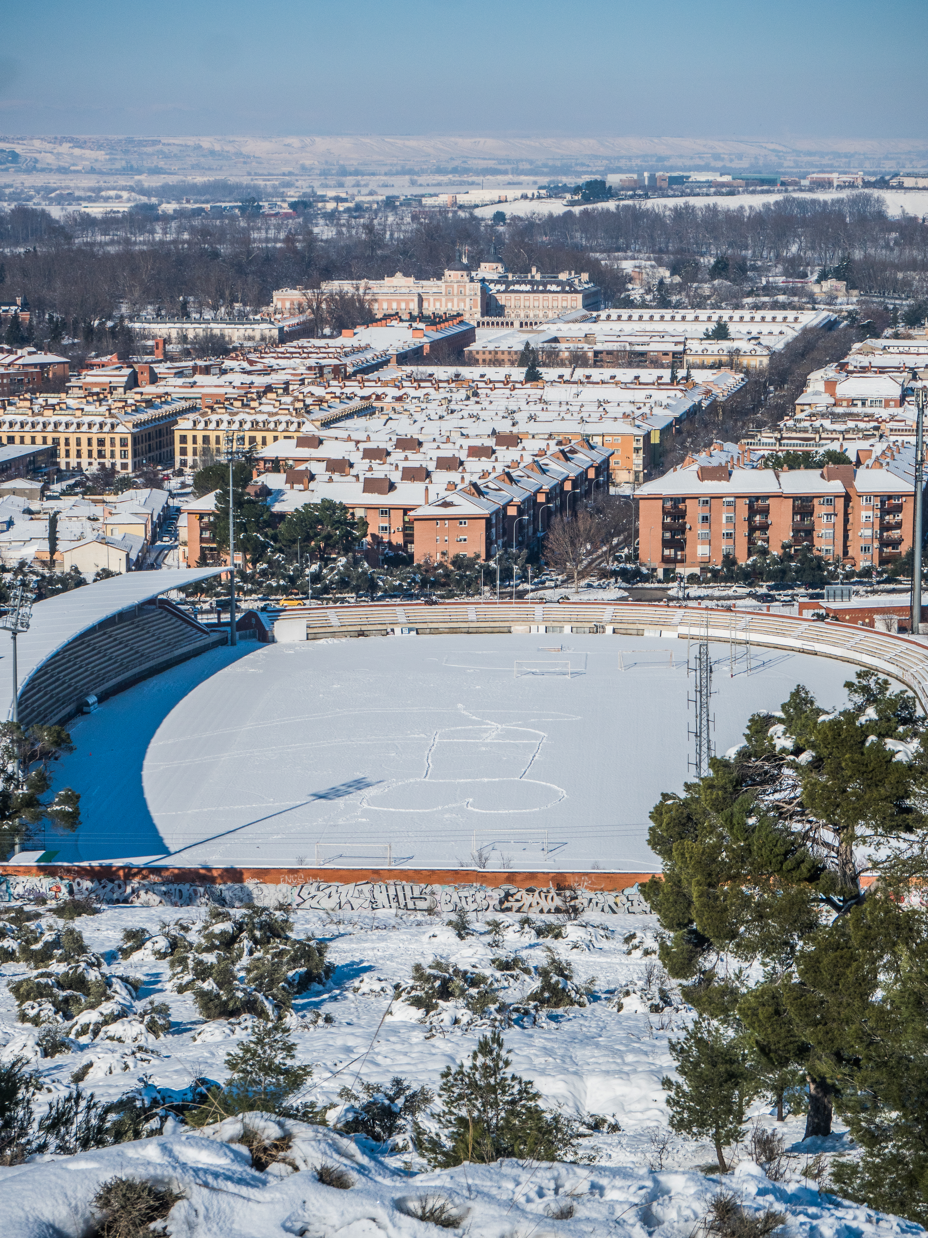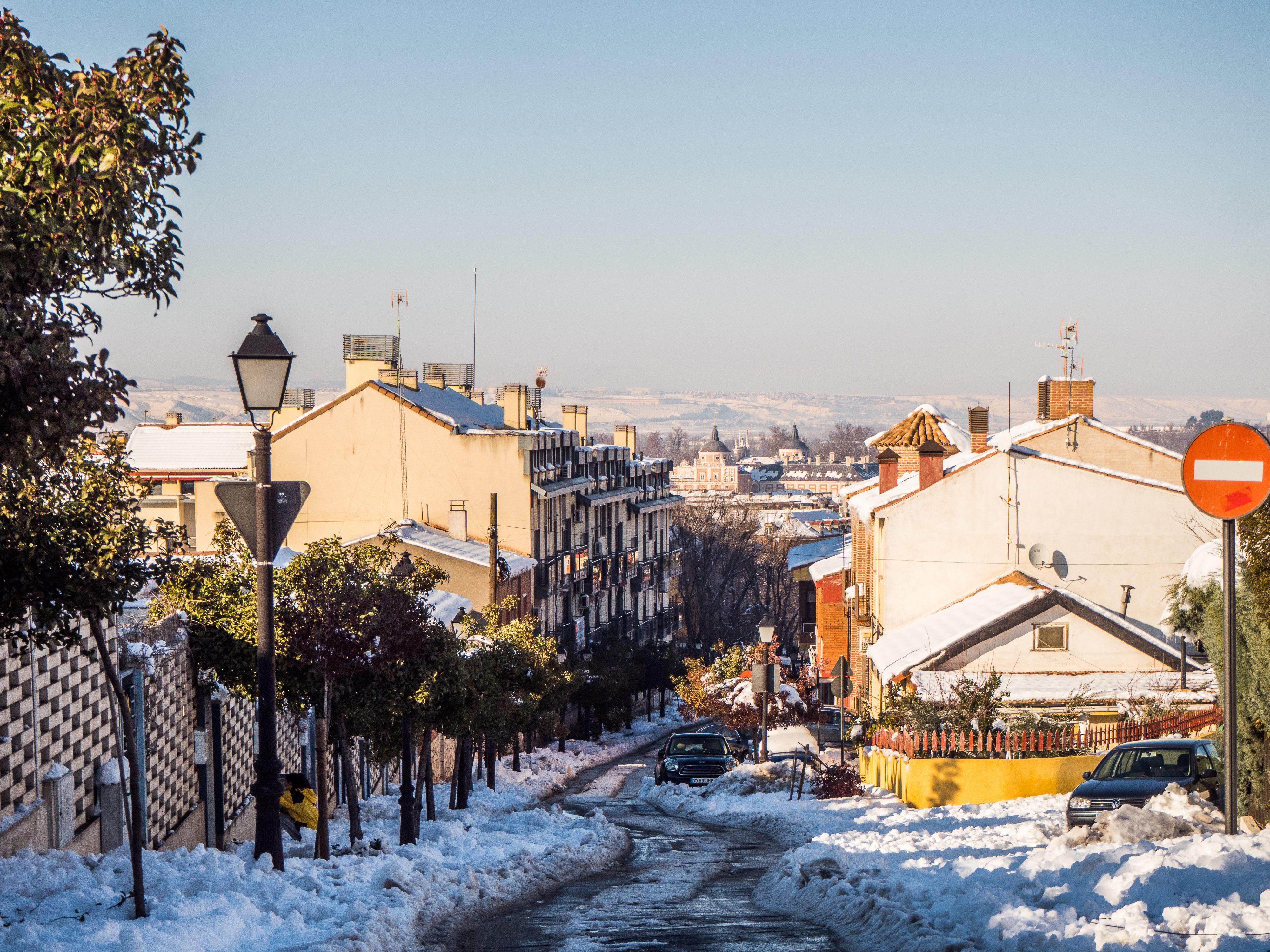 While the capital was a mess, the outskirts were stunning. As soon as the Cercanias service was reinstated, I managed to visit Aranjuez and El Escorial. A trip to the Sierra with snowshoes would have been fantastic, but the mountains were sadly inaccessible. Not that getting anywhere else was easy. On the Monday following the snowstorm my friend Sue and I turned up at the station and hopped on the first train that was going anywhere, which happened to be Aranjuez. The service was dodgy, the journey that normally takes 40 minutes lasted almost three hours, so the day didn’t leave us with many hiking options. We took a little walk around the royal palace and through the deserted city centre, and then continued to the natural reserve Mar de Ontígola just out of town, which in summer is a nesting ground for many aquatic birds and one of the most important butterfly reserves on the planet. On that occasion it was half frozen and covered in snow. The entire flats south of Madrid looked like Siberian plains, once in a lifetime kind of breath-taking.