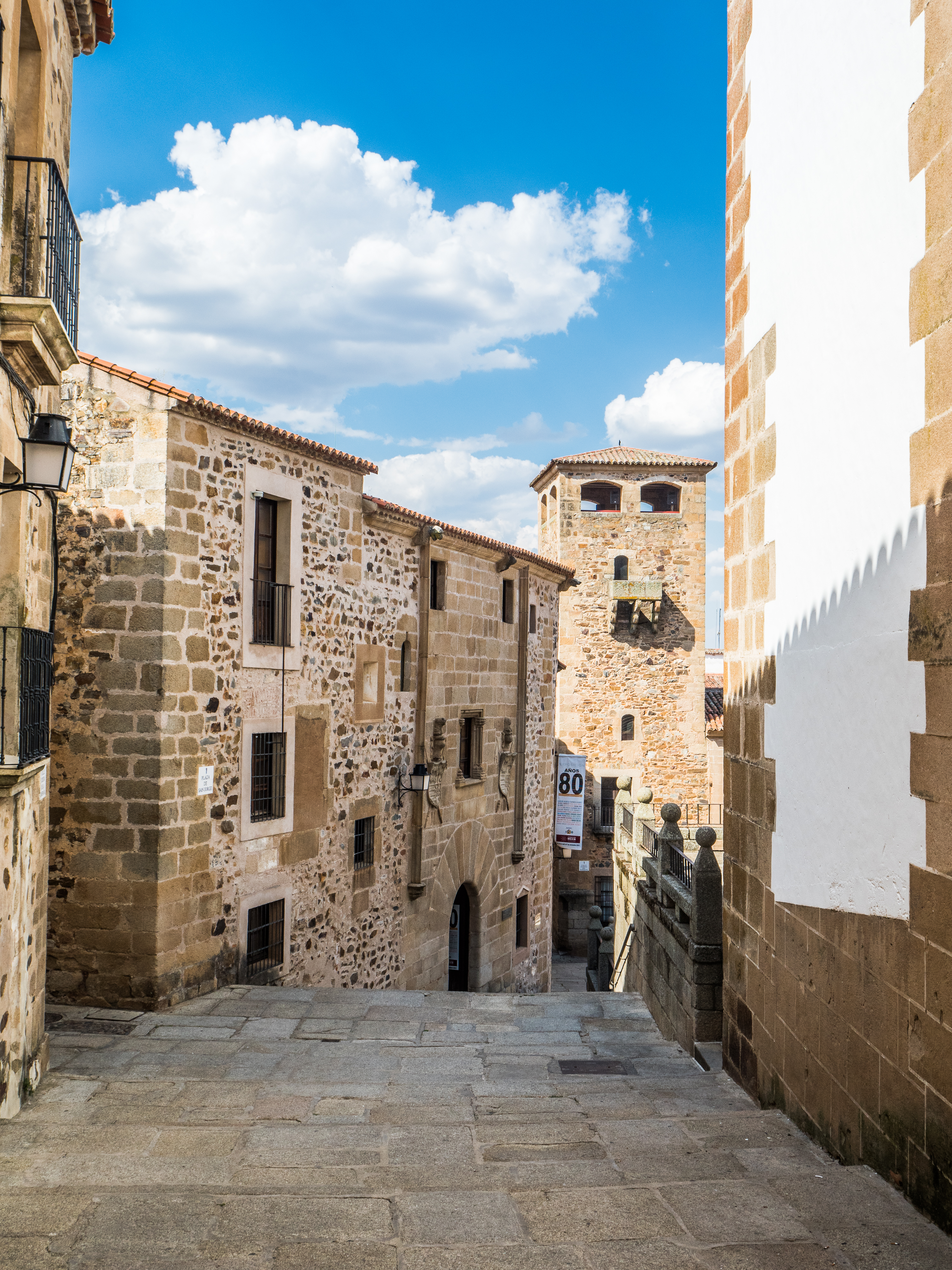 Cáceres is located in the region of Extremadura, which is known, as the name suggests, for extreme weather conditions. At the end of May, the temperatures were already hitting high thirties. We arrived conveniently at pre-lunch aperitif time, and by the time we got through the fairly liquid lunch, Alberto desperately needed a siesta. I, on the other hand, having sustained a hard self-imposed training in alcohol intake during the confinement, packed my camera and went for a walk. Styled as the third most beautiful monumental complex in Europe (after Prague and Tallinn) and UNESCO’s World Heritage site since 1986, Cáceres is a little jewel that is not to be missed. The medieval city centre consisting of a mixture of Roman, Moorish, Gothic and Renaissance architecture enclosed within the ancient walls is perfectly preserved and untainted by any modern influence, which also makes it a popular shooting location of many historical films and TV series (most recently the Game of Thrones prequel, so hurry if you want to visit before Cáceres suffers the same fate as Dubrovnik). I first walked around the city on my own, to be able to take photos in peace, entered every opened church and climbed every tower, and then went on an hour-long guided tour (in spanish, I suppose english would be an option now that foreign tourists are back), which I booked upon walking in the official tourism office in Plaza Mayor. 10 euros totally worth it, especially if your time in Cáceres is limited to one afternoon.