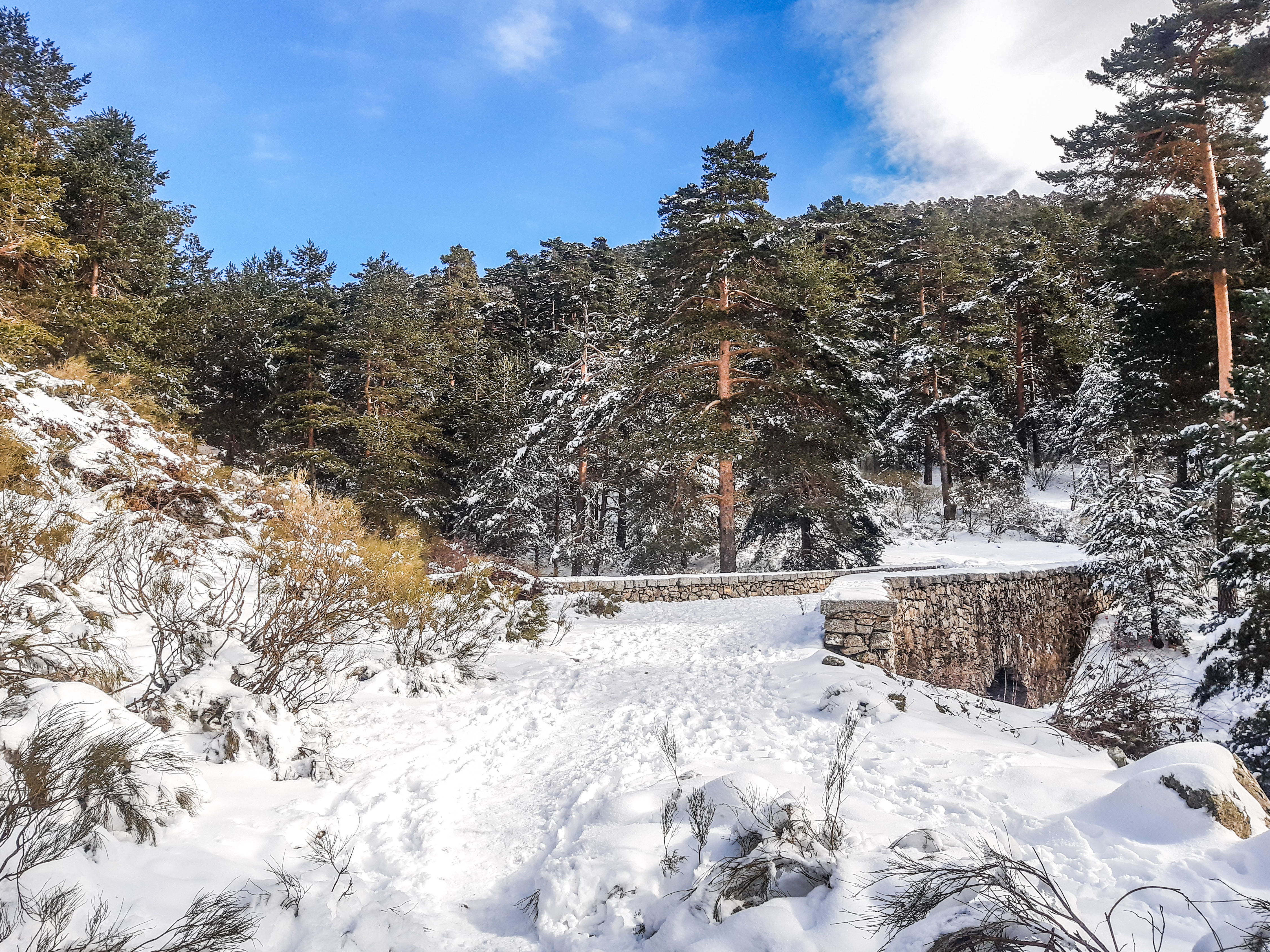 How to get there: C8 Cercanias commuter trainline from all major stations in the capital, or there are two bus lines from Moncloa. The bus is a little faster. Then you’ll have to walk to Las Dehesas. Make sure to be there early in the day. The walk from the village to Las Dehesas is about 4 km and takes 45 minutes. There are two options, either Camino Puricelli on the left hand side of the road, or Camino del Agua on the right hand side. Either will work. I prefer the Puricelli option on the way up, because it starts right at the station and leads you straight to the Puente del Descalzo, where it blends with several other trails. On the way down I prefer taking the Camino del Agua, because it crosses with the path that descends from the mountains and makes for a faster return to Cercedilla, without needing to go back to Las Dehesas.