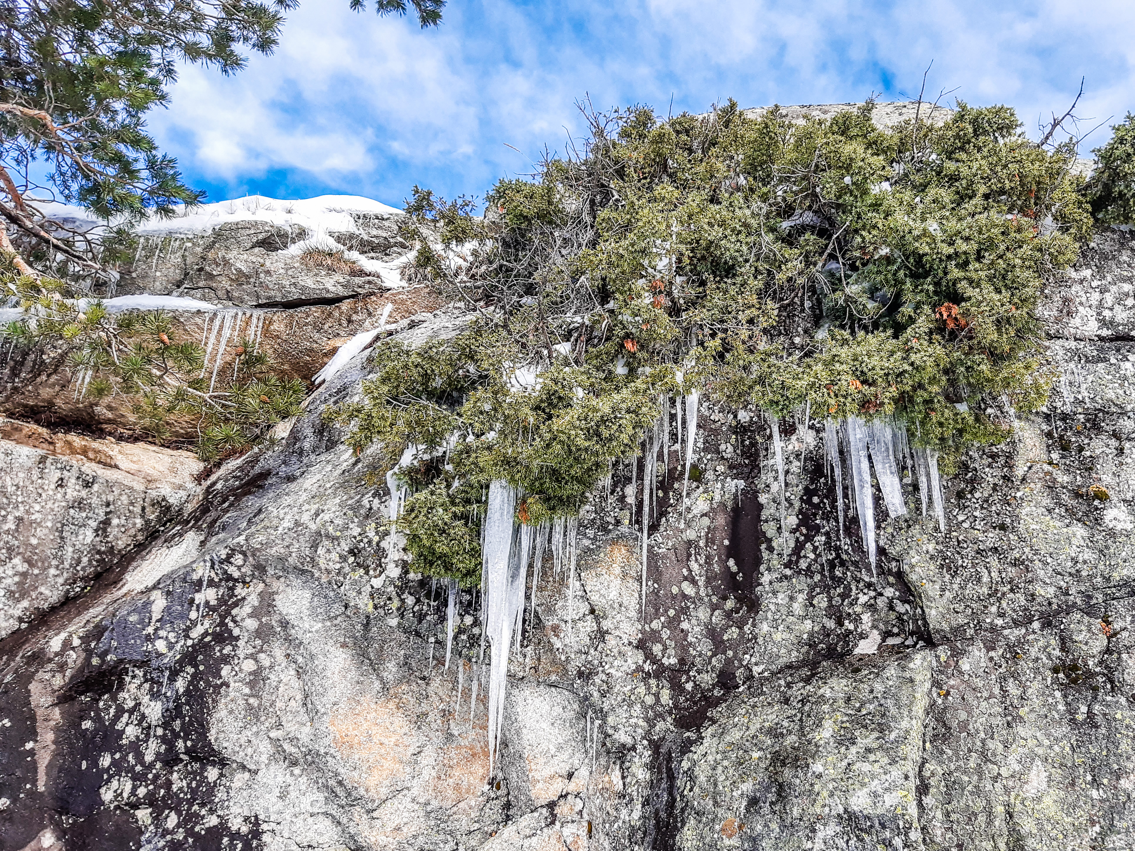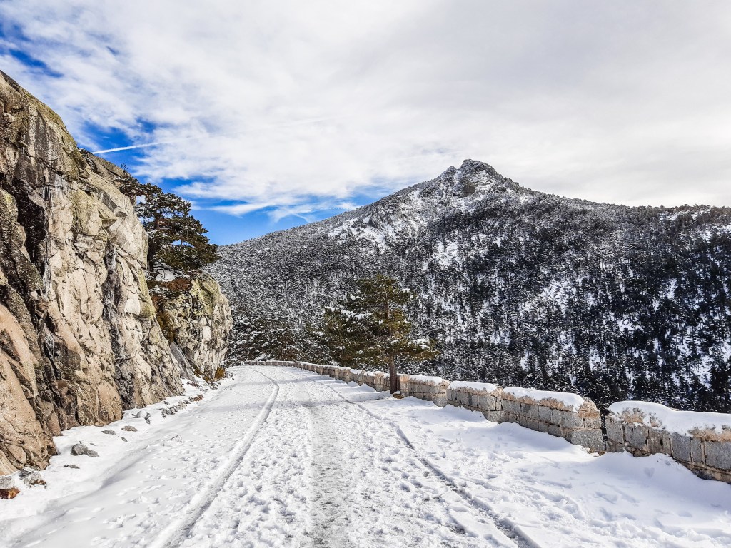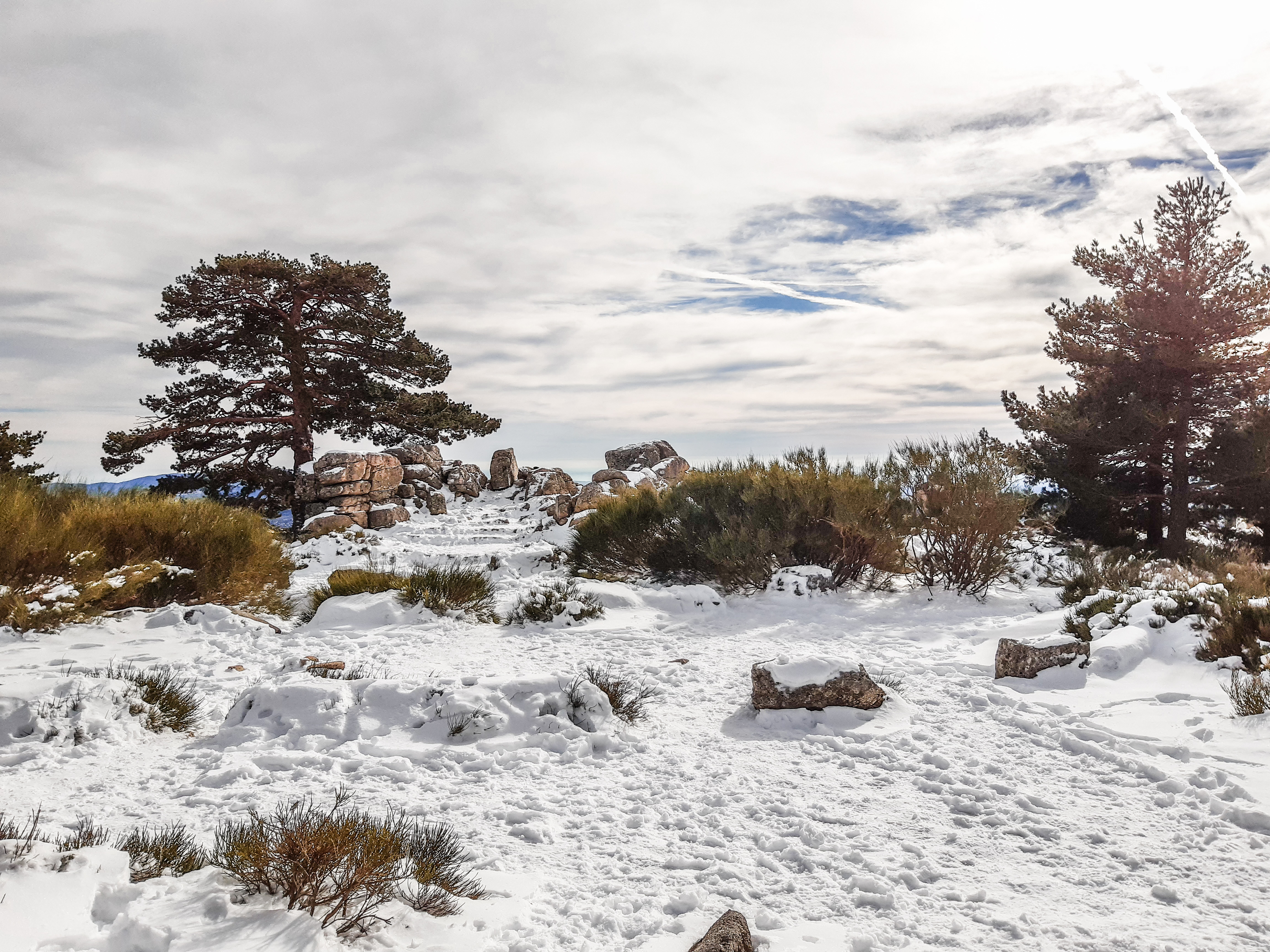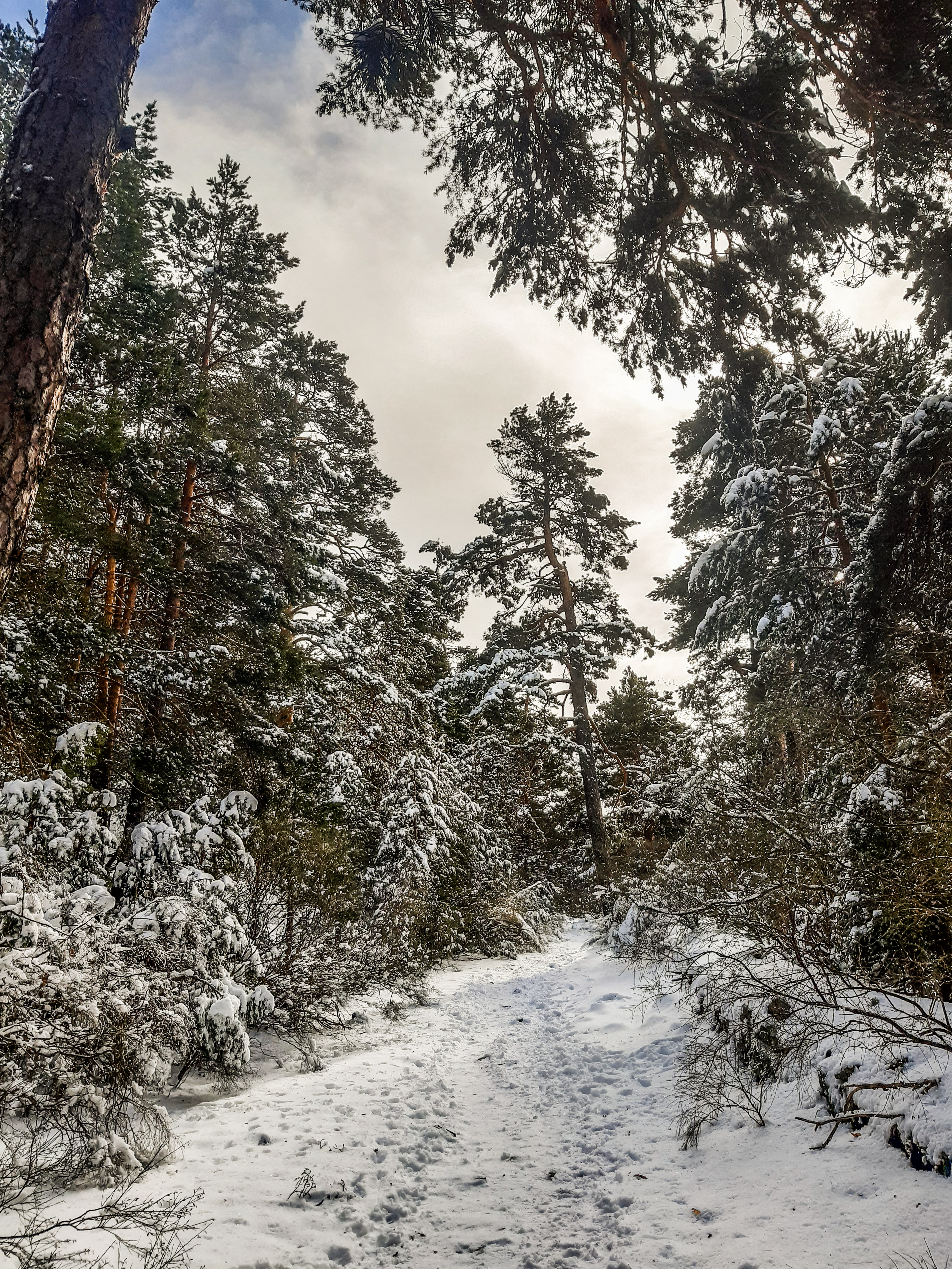 Difficulty: easy to intermediate. BUT, please bring adequate gear. Last year, the day after Filomena, I was amazed how many people in Madrid own full winter gear, as Granvía and any other street or park with the slightest incline turned into a skiing slope. Would you please, please consider bringing some of that gear with you when you go to the mountains? Proper gloves, proper shoes, for God’s sake, count as suitable equipment. Converse or sneakers do not (not even in summer, let alone with 40 cm of snow). Special equipment is not necessary, unless you want to tackle the peaks. The paths were walked-through and comfortable (actually more comfortable than in summer, when you have to watch your step on the loose stones), so my normal all year hiking boots were perfect, but I’d advise to use the hiking poles and crampons on the descends, especially early in the morning, when the trails are icy. I chose this particular walk without ascending on the ridge, precisely because I didn’t want to carry too much stuff, but I’d consider snowshoes if I intended to climb further up or if it had snowed a lot on the previous night. I mean, use common sense. Charge your phone. Bring food, water, a thermos with hot tea, maybe an extra layer and an extra pair of dry socks, just in case. Spare the converse for a pub crawl. At least you can wash them easily after you’ve thrown up all over them.
