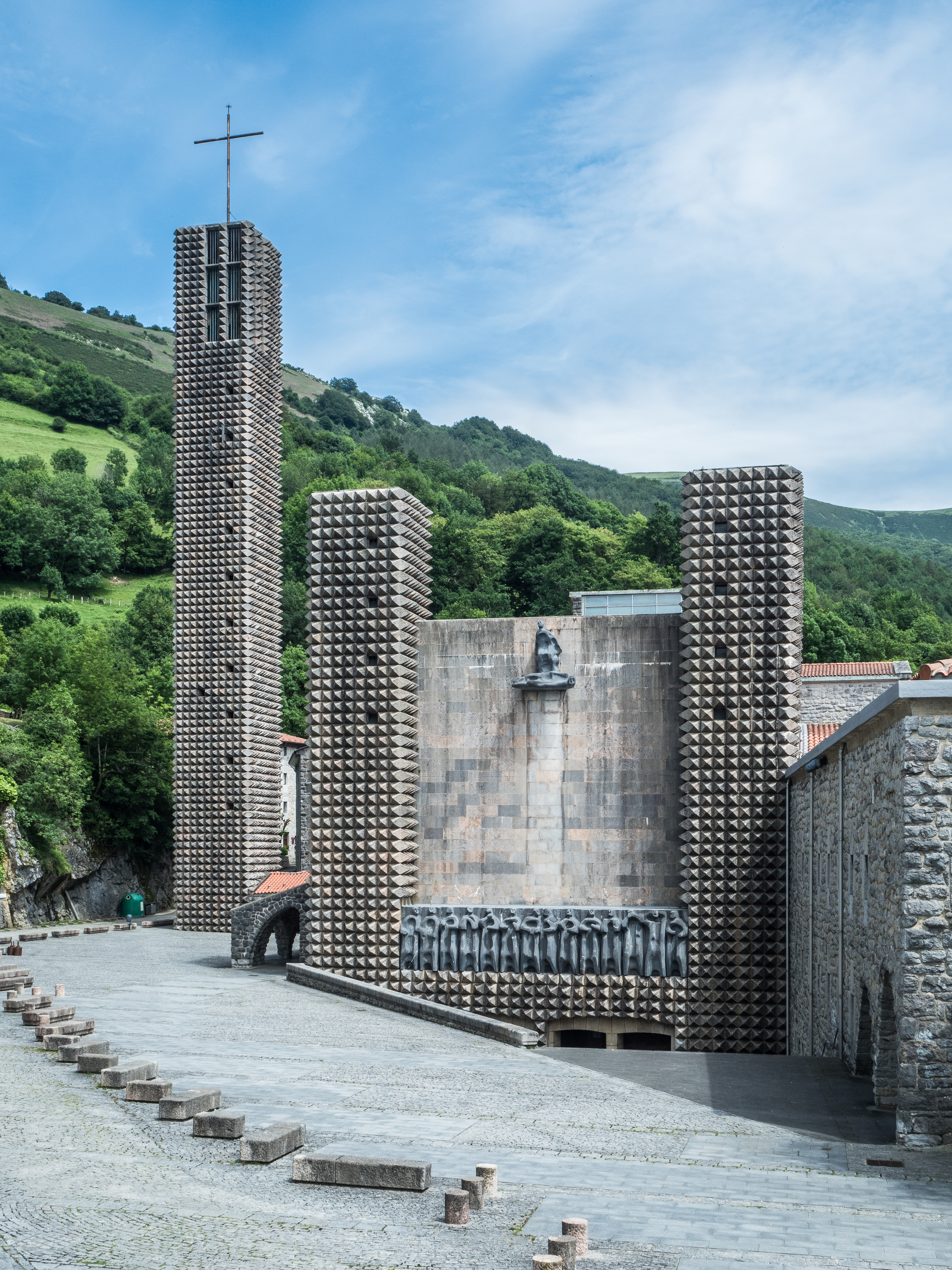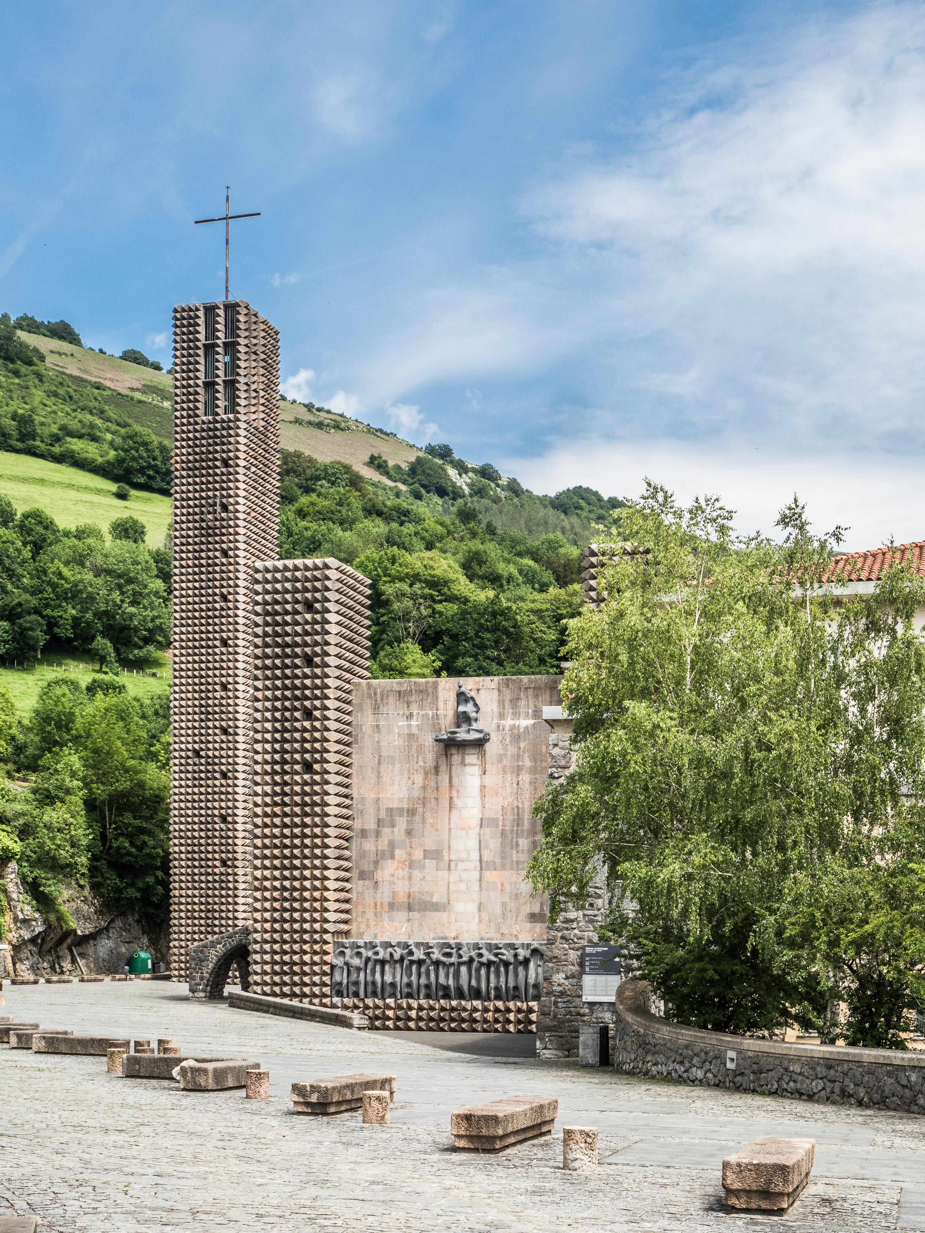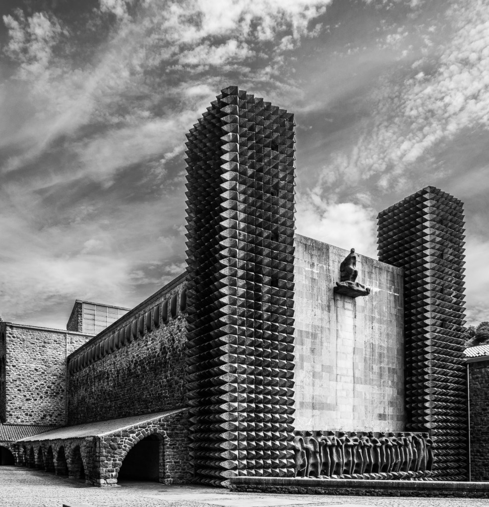This has been on my “things to see in Spain” list for a long time. Not because I am religious (I think I made the contrary perfectly clear on this blog), but because of my fascination by raw concrete. Brutalism is the defining style of the 20th century and possibly the last distinct architectonical current before everybody started playing with AutoCad 3D. It never took much effort to build a church in Spain, but I think some recognition is due to those who did not fear to erect basilicas in styles correcponding to the times, rather than randomly mix’n’match-ing from books of history of architecture (yep, I still think Almudena is ugly AF). But there are also wonders like the Franciscan sanctuary of the Virgin of Arantzazu, the patron saint of Guipúzcoa province of the Basque Country, built in glorious brutalist style by Francisco Javier Saénz de Oiza (Torres Blancas, among others, in Madrid) and Luís Laorga between 1950 and 1955.