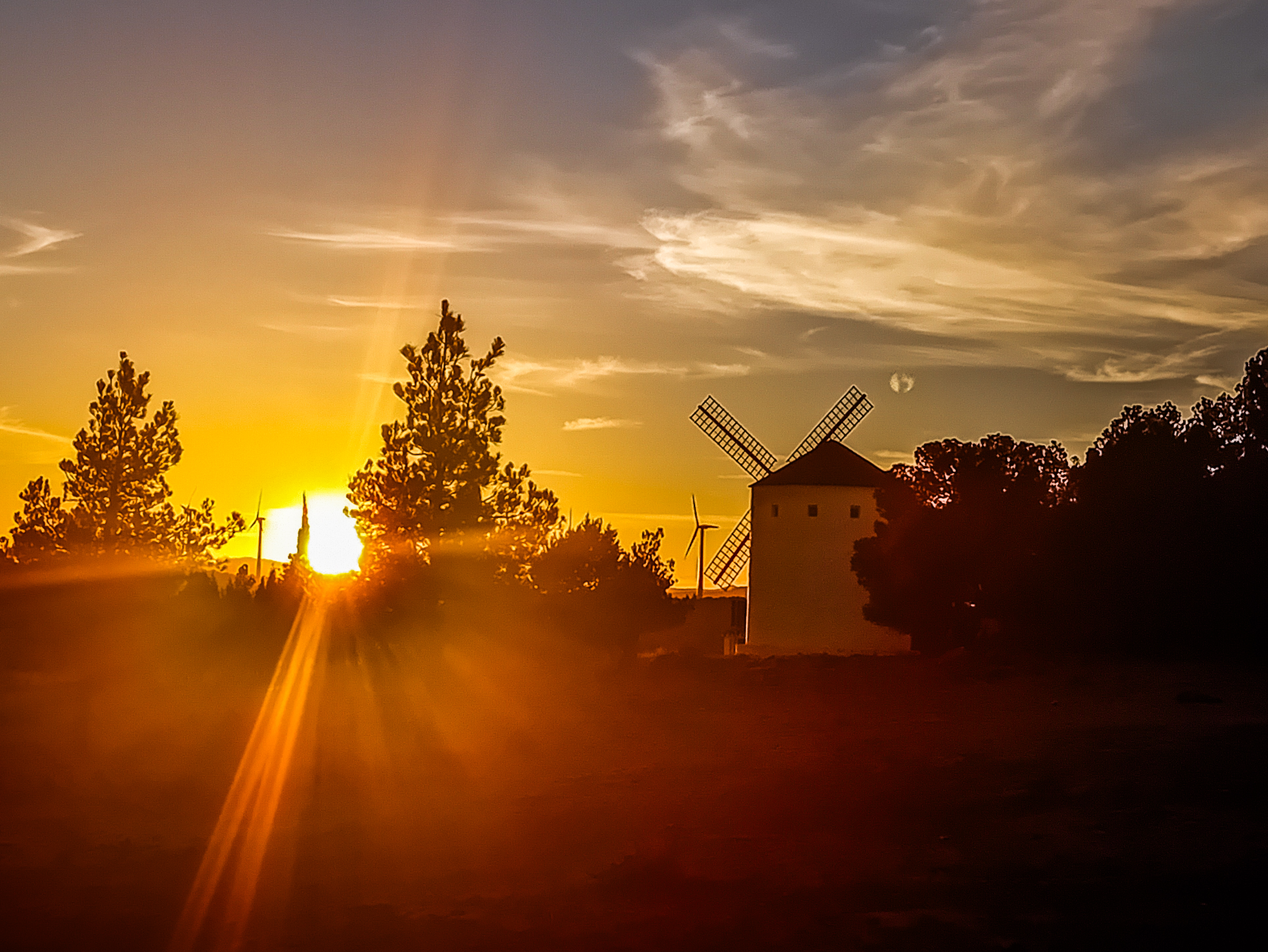 A popular saying in Spain sentences the following: Albacete, caga y vete. Literally “take a dump and leave”, possibly because it’s a point of passage between the capital and the coast, with nothing of major interest to see, where people would stop to attend to calls of nature and continue their journey to the beach. I did just that (meaning, didn’t waste any time in town, I don’t recall any defecation, in case you need to know). I had a more pressing matter to resolve: I could not get on the morning train, because it was fully booked for some unexplainable reason and my train would only arrive to Albacete at 17.30, which in mid-October meant roughly 2.5 hours of daylight left, and 65 km ahead. I knew I would cycle the last hour in darkness, no matter how hard I’d push myself. I had more lights than a Christmas tree, so cycling at night wasn’t an issue. The first day was basically transfer across the great Castilian plains towards more exciting landscape. The first two thirds of the ride are uneventful, except for the amount of wind turbines. It’s a boring, straight, flat (well, false-flat) road that seems to have no end. At least I didn’t have headwind (they put all those windmills there for a reason). I planned the last third on a nicer, quieter, hillier road, before dropping to Ayna, but decided against it once the night fell and took a shortcut, because the traffic was light anyway, and last thing I wanted on the first day was a close encounter with a wild boar.