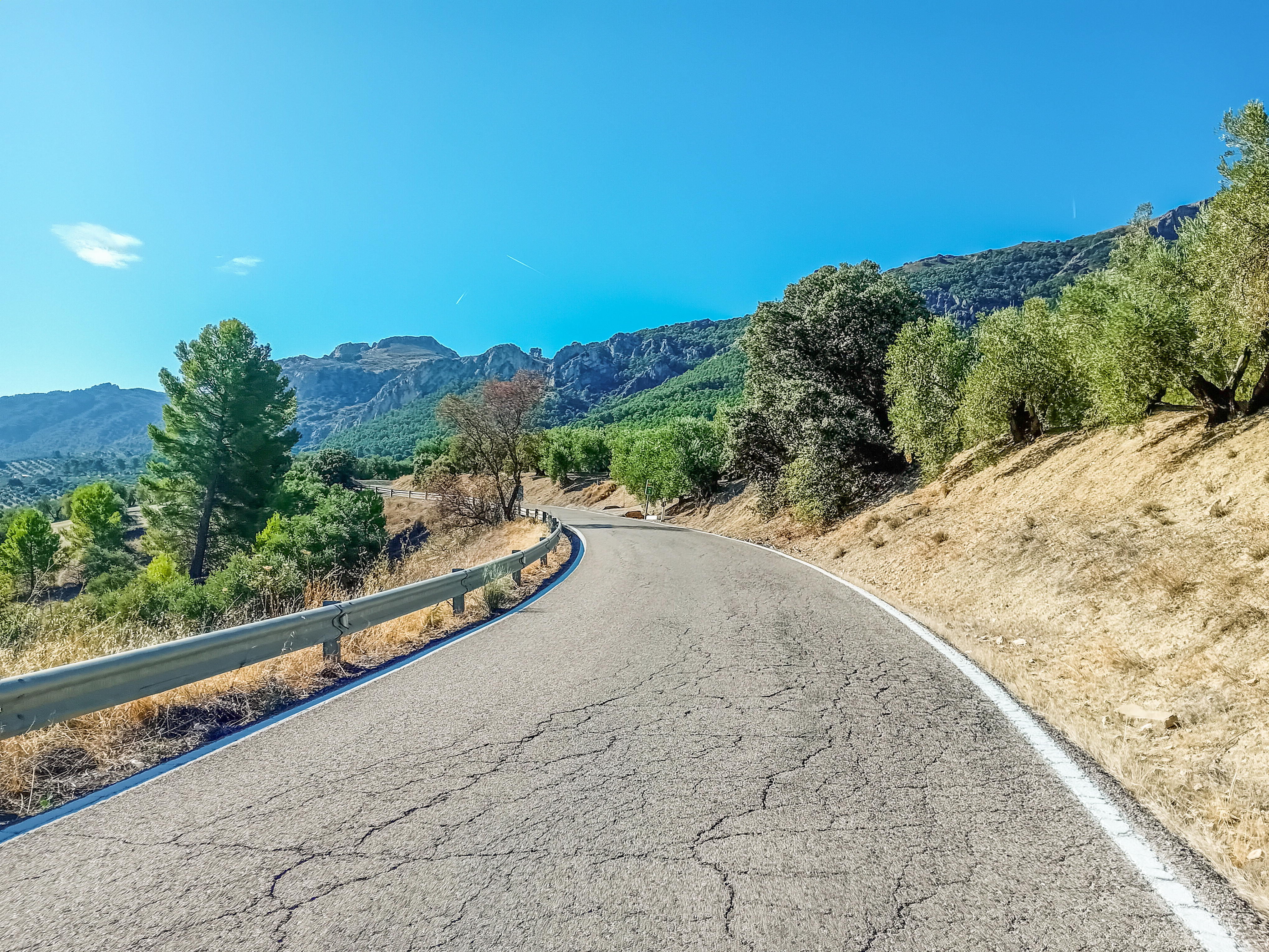 The day starts with a very gentle climb to Puerto el Arenal. Perfect for a warm up, as the morning was a little chilly. Just before reaching the top, do not miss the detour to Nacimiento (spring of) Río Mundo. Depending on the time of the year, the waterfall can be spectacular. Even after the long and dry summer that we had had, there still was some stream left and it was worth the extra climb. Then descend towards Siles and finally entering Andalucía. More pine trees, deserted roads and fantastic views. I had a light lunch in Siles, mainly because I lost time during the walk to the spring and next available stop would have been too far. I climbed from Siles towards Navalperal, possibly the toughest climb of the entire week, because it’s almost 10 km long and the first half is over 9%. On the other hand, it’s all in the shade and the views are awesome. There are other and easier ways to continue from Siles, but I’d recommend this one because of how quiet it is. You will arrive to the castle of Segura from above, it sort of appears in front of you, and then you enter the city centre straight away (as opposed to having to climb to it, for once). Unfortunately, both restaurants in the centre were closing, but the bartender, who was a cyclist himself, took pity on me and sold me a cold drink. You get the first glimpse of olive groves on the last stretch of the road towards Hornos, although nothing compared to what was about to come in the next days.