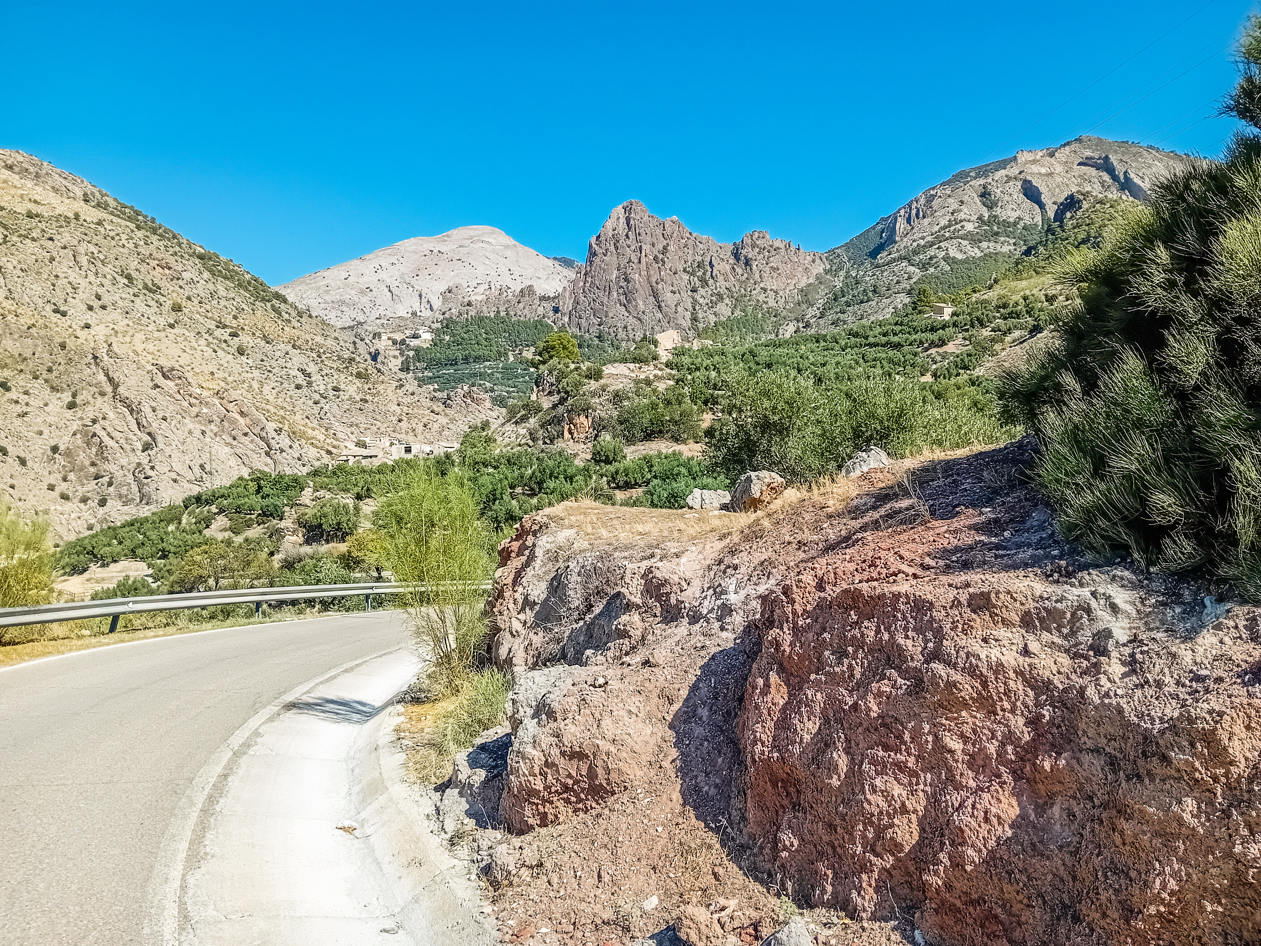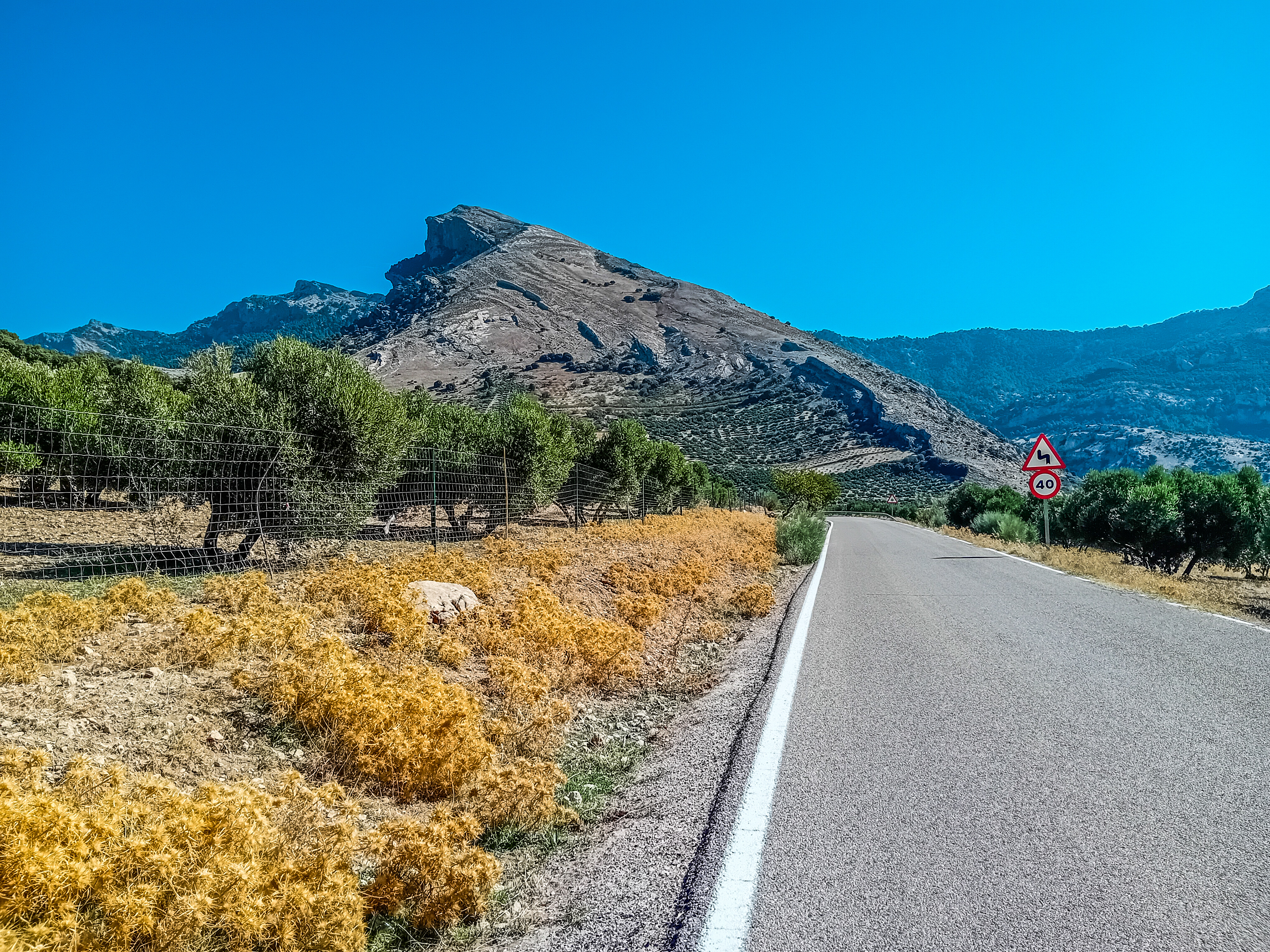As I was standing in the morning on the city walls of Úbeda, slightly hungover, and looking towards Sierra de Mágina on the other side of the wide valley of Guadalquivir, I had no desire to get back on the bike. But it turned out to be one of the top days of the entire week. I took the cycling path between Úbeda and Baeza. On paper, uniting the two renaissance cities by a mostly flat cycling path is a beautiful thought. Unfortunately, the execution was carried out by a murderous psychopath. If you are on a road bike, be very, very careful. There are certain potholes or ruptures in the tarmac, that are about 5 cm wide and 20 cm long and just perfect for your wheel to get stuck in. Baeza is another stunning city, but I could not visit the cathedral because it was closed for a wedding. So I opted for a wander and early lunch instead. After that I descended through interminable olive groves towards Guadalquivir and headed for Sierra de Mágina. The actual climb towards the Albanchez pass starts at Jimena, but it is a constant climb once you cross the river. The road was breathtaking. And I don’t mean it left me short of breath, I mean the views were astonishing. Apart from several olive harvesting vehicles and one bored guardia civil patrol I didn’t meet a single car. I was staying in the rural hotel 2 km after crossing the Albanchez pass and I cannot recommend it enough. Fantastic views, great restaurant, helpful staff, very romantic setting (sadly I had just Lilith in my room).