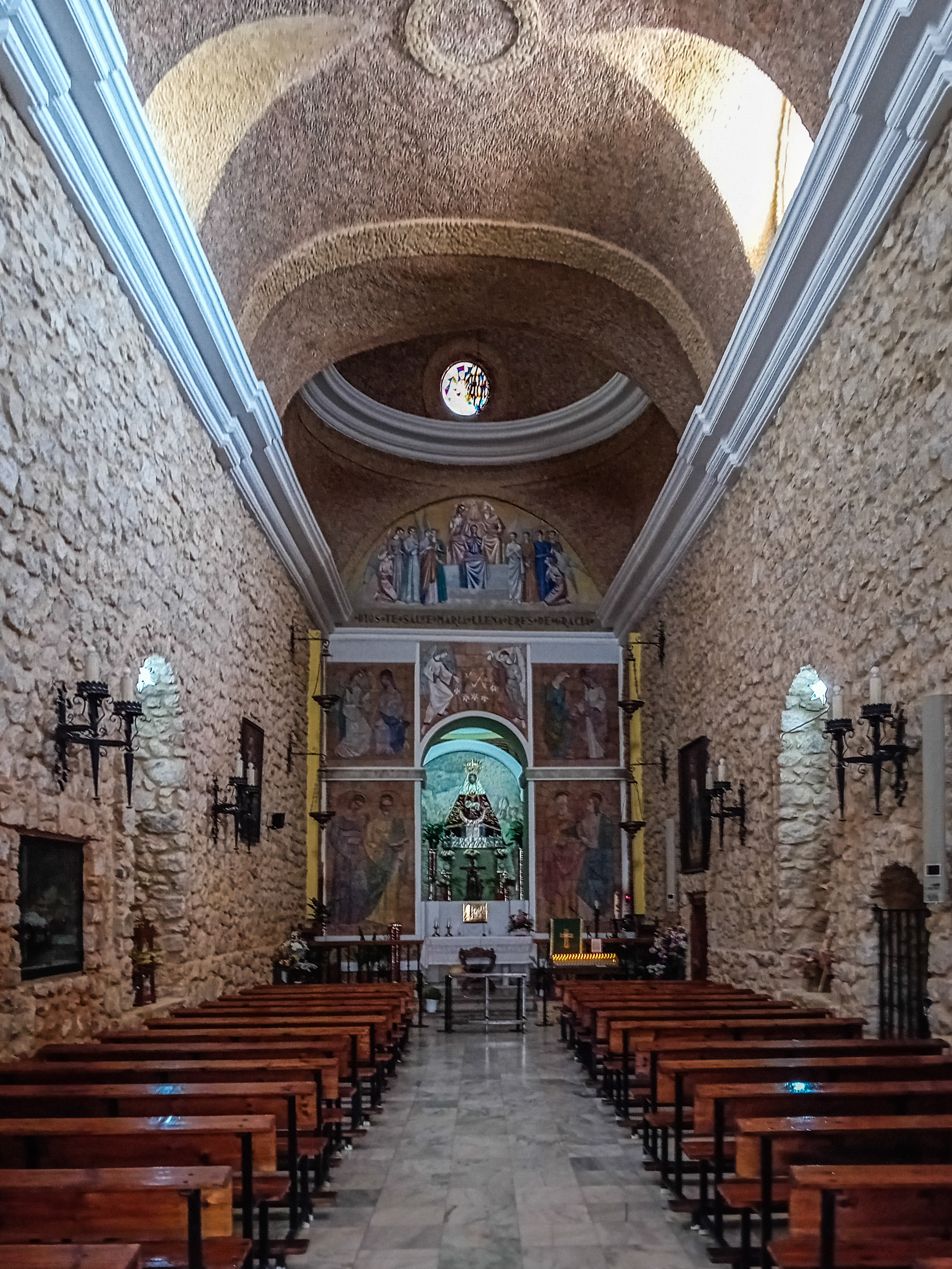 There is a shorter way from Cazorla to Úbeda, but remember, this is an excursion, and the point is to enjoy the views, not to get from A to B on the fastest road. Also, I am probably becoming one of those people who see a hill and are not happy unless they climb it. The scenery has changed significantly compared to the previous days: it’s rolling hills covered by olive trees in the lower altitude and when I start the climb to Tíscar, the mountains become almost completely bare. Again, the climb is long, but mild, and the biggest problem is that there is almost no shade along the way, so on a warmer day, this would be an unnecessary suffering. The descend to Tíscar is stunning. I visited la Cueva del Agua, a narrow cave created by river Tíscar, that normally has a beautiful waterfall (and a statue of the Virgin, obviously, there is a virgin in every cave in Spain), but was completely dry this time of the year. I met up with a friend from my fencing club who has family in the area and invited me for lunch. He insisted that it was downhill all the way to Huesa from Tíscar, but forgot to mention a 2 km hill at 19% through some olive grove. That was just pure evil. (The home made-lunch was awesome though).